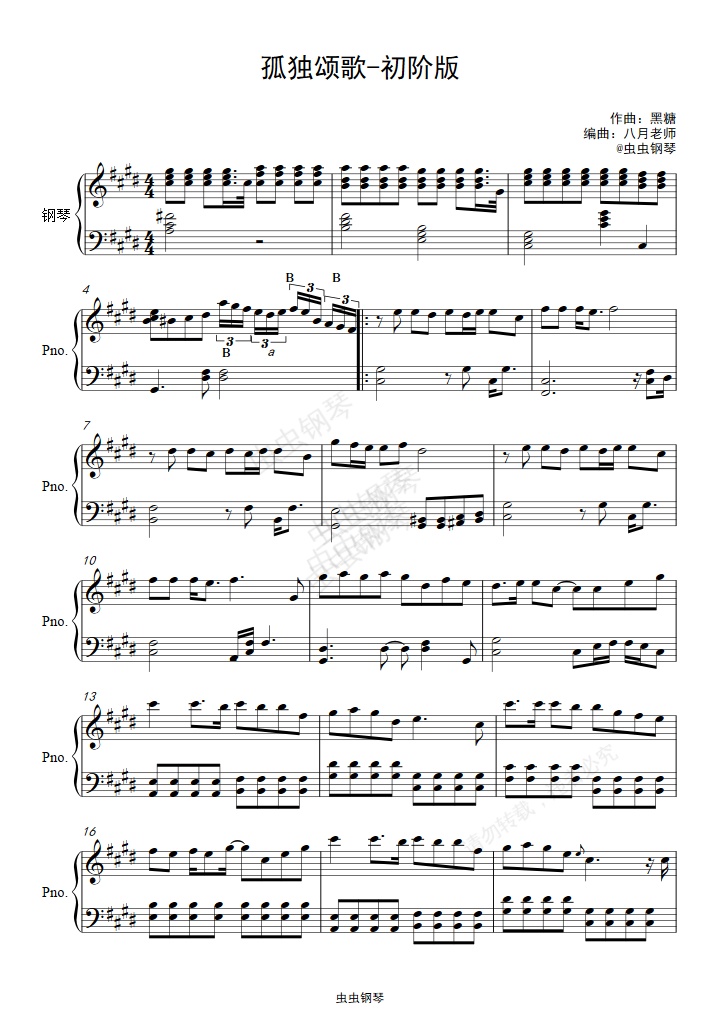 钢琴谱:孤独颂歌 初阶版