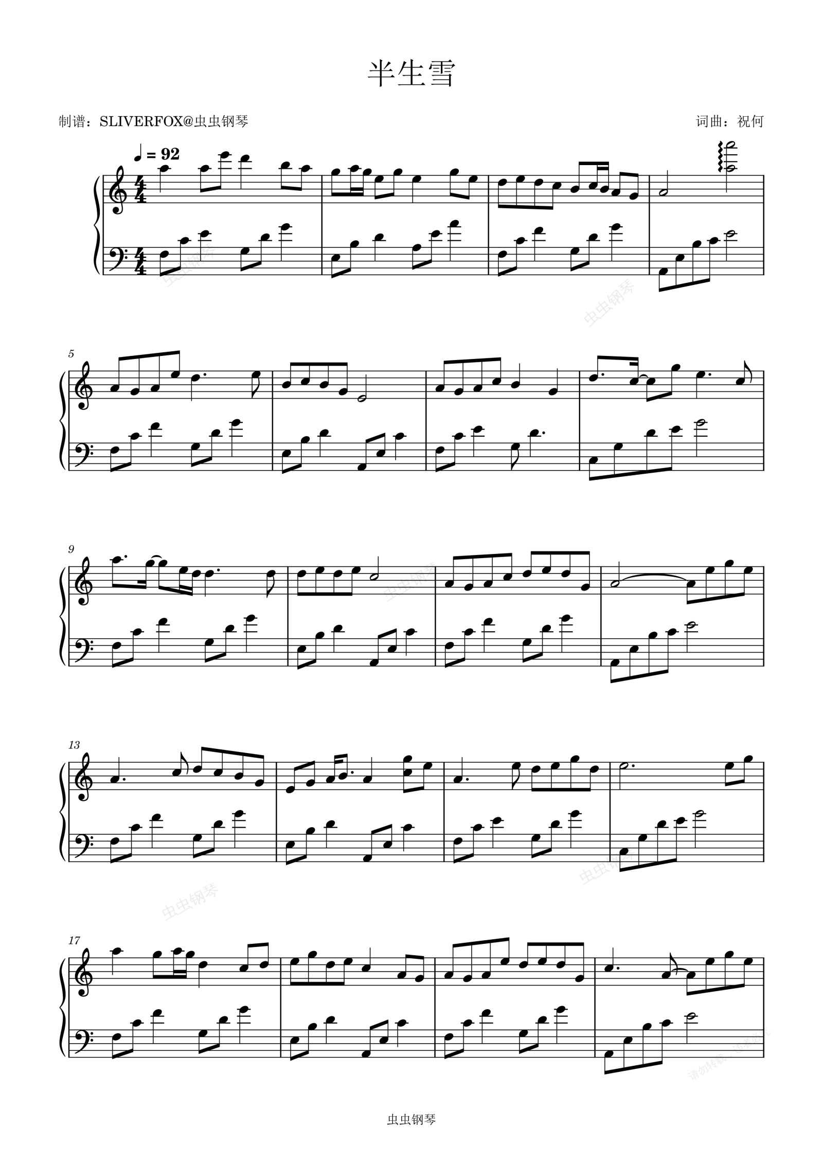 钢琴谱:《半生雪》成人简易流畅钢琴谱 C调
