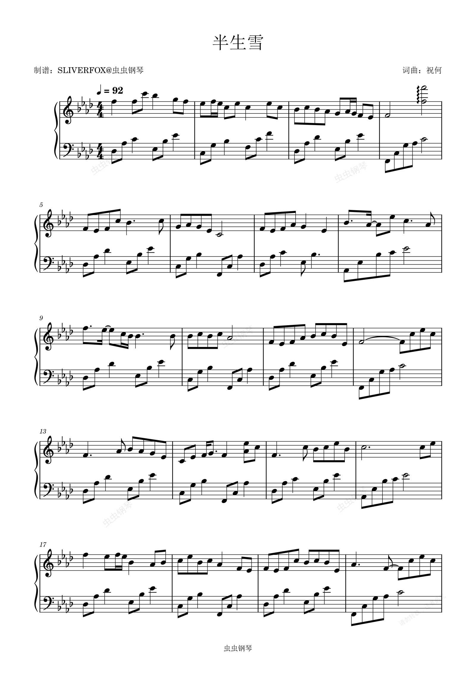 钢琴谱:《半生雪》成人简易流畅钢琴谱