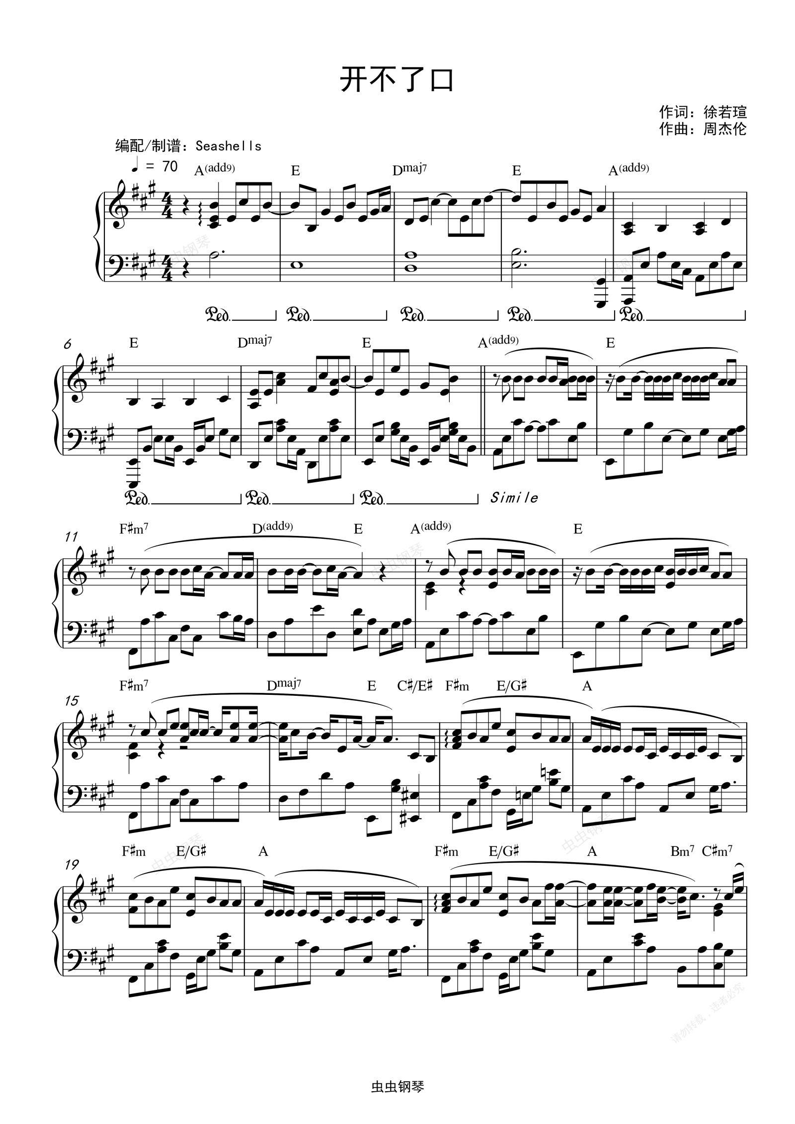 钢琴谱:周杰伦-《开不了口》精编钢琴独奏