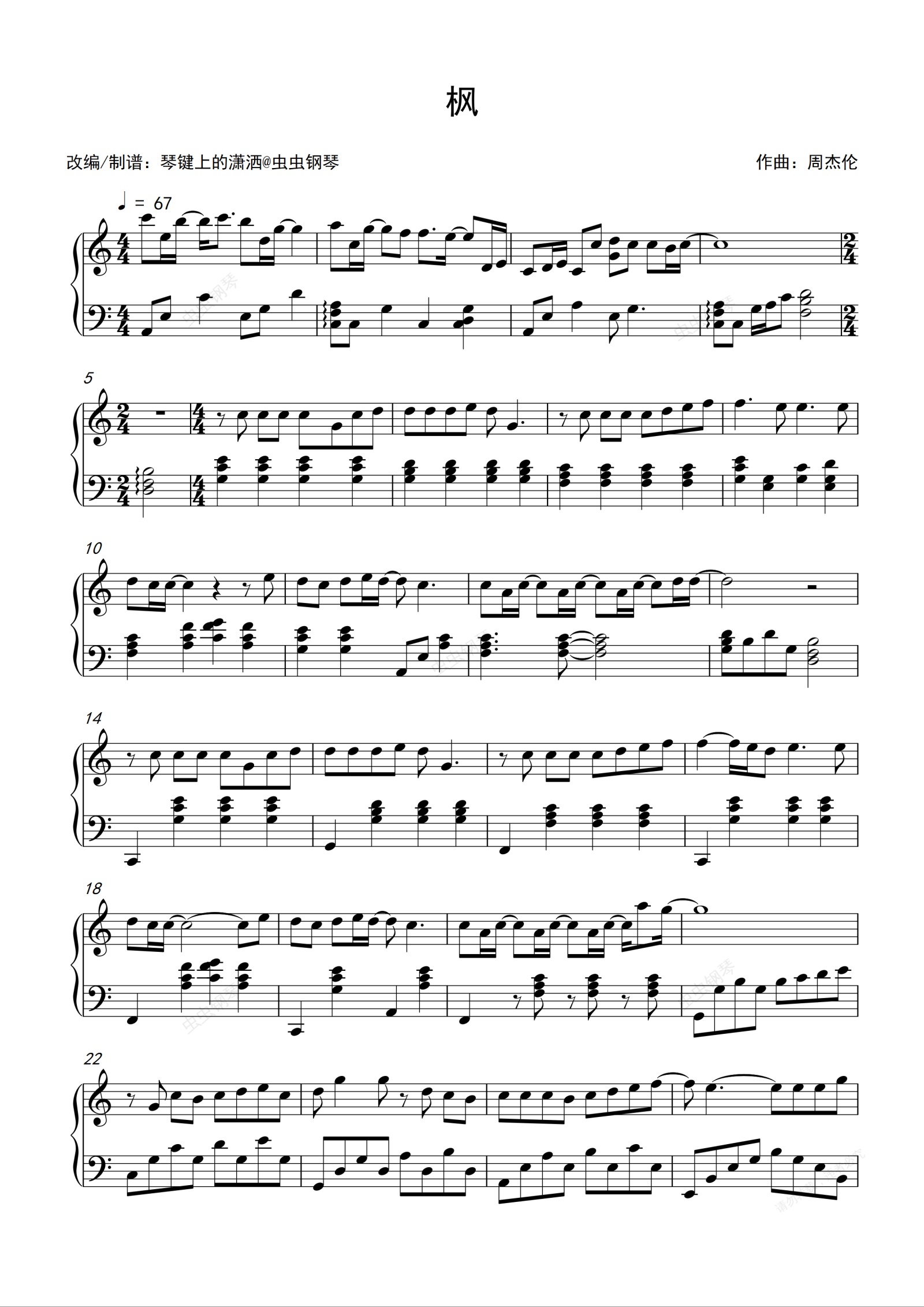 钢琴谱:《枫》-周杰伦-完美C调独奏