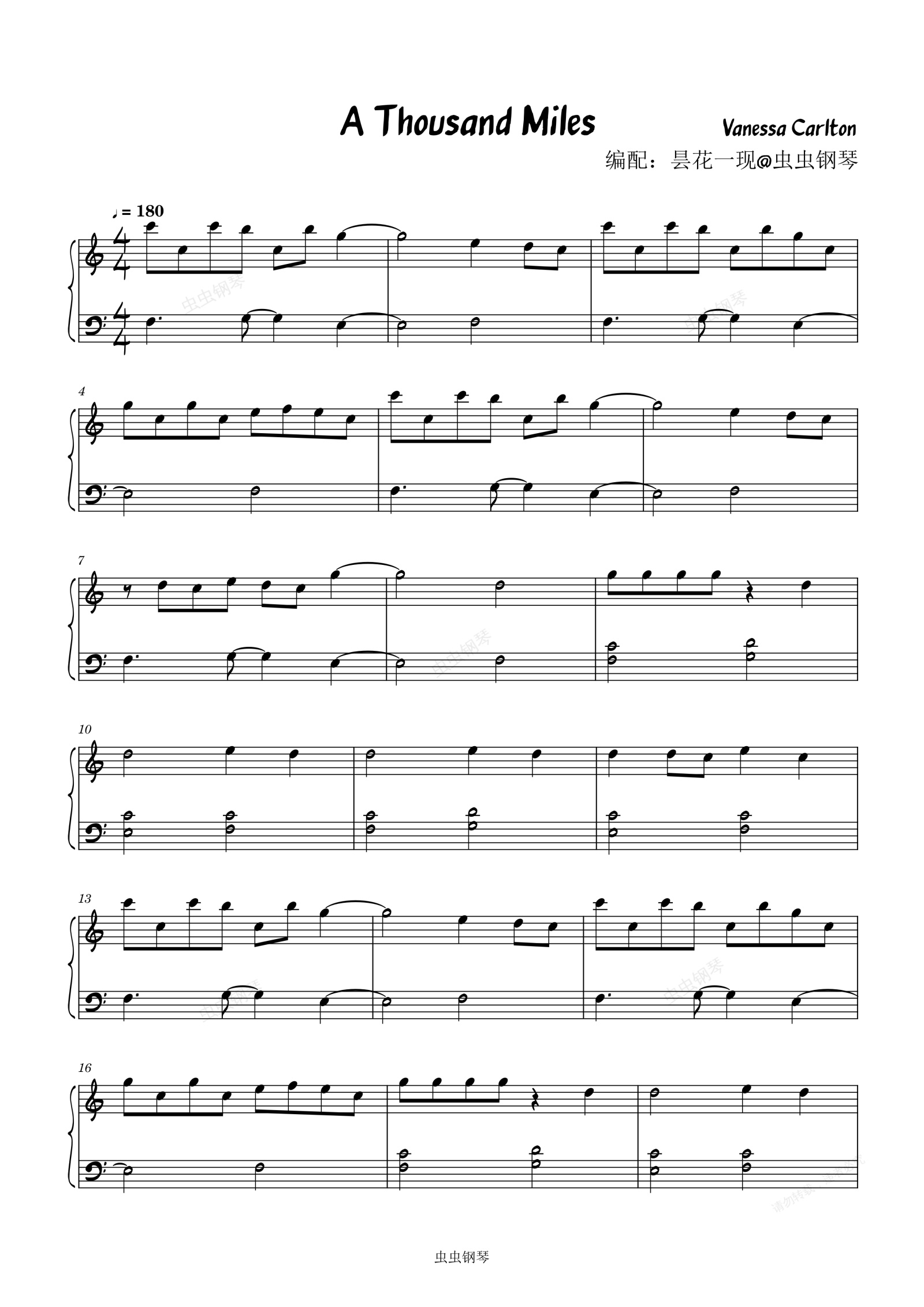 钢琴谱:A Thousand Miles 3级程度(简单版)