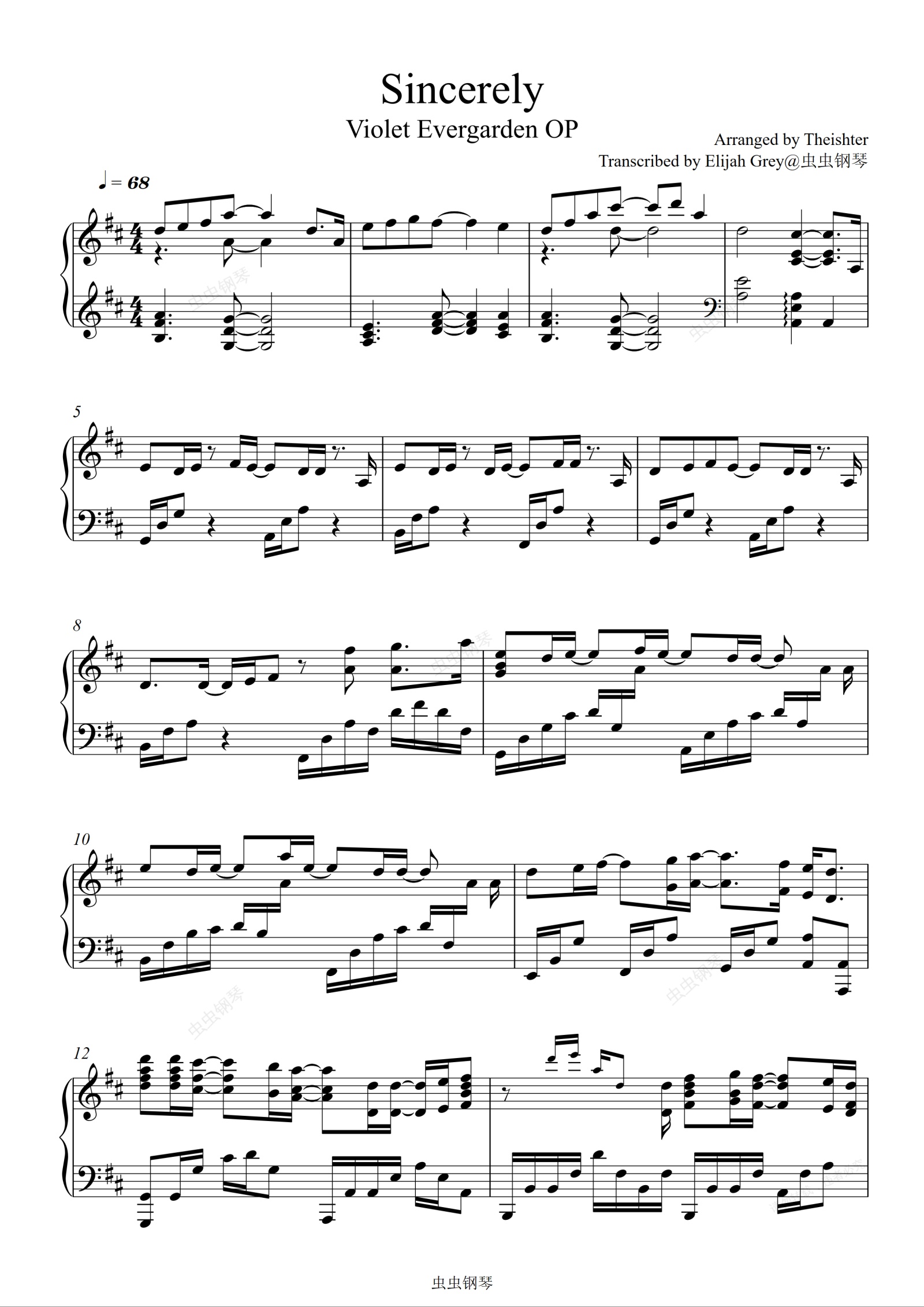 钢琴谱:Sincerely 紫罗兰永恒花园OP