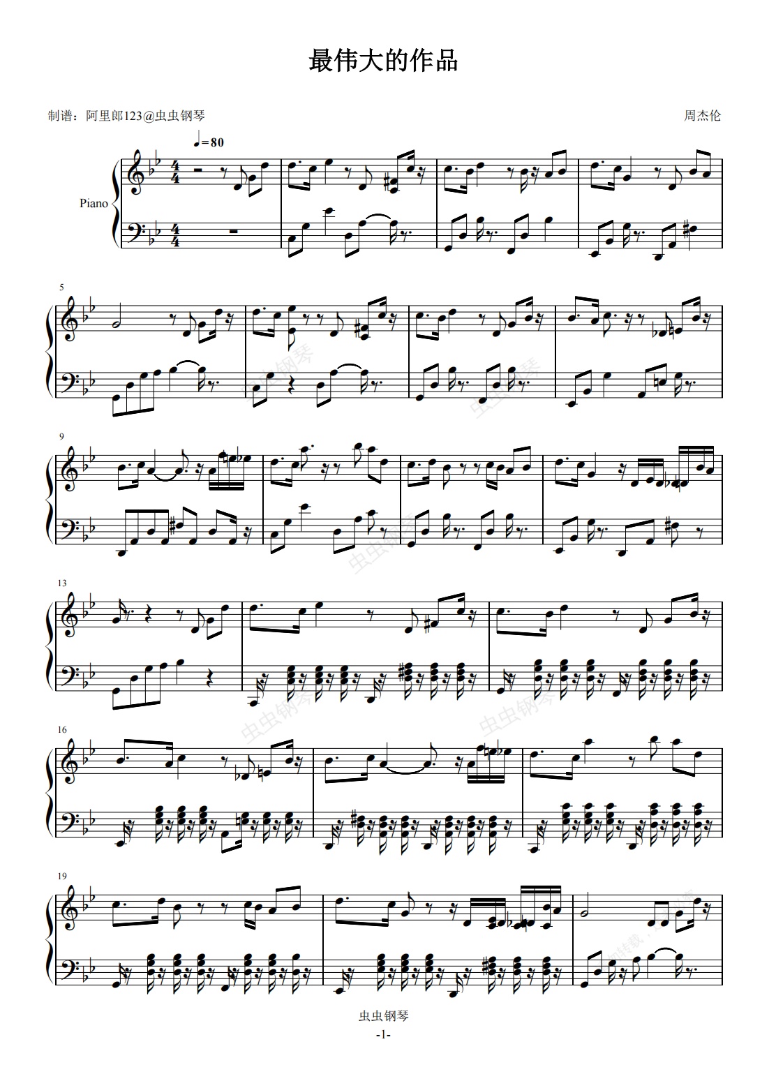 钢琴谱:周杰伦-最伟大的作品(抢先版)