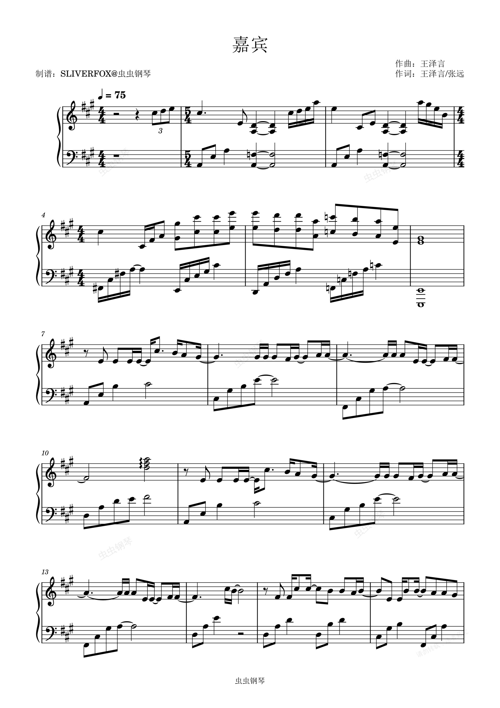 钢琴谱:《嘉宾》成人流行钢琴谱 A调 失恋伤感