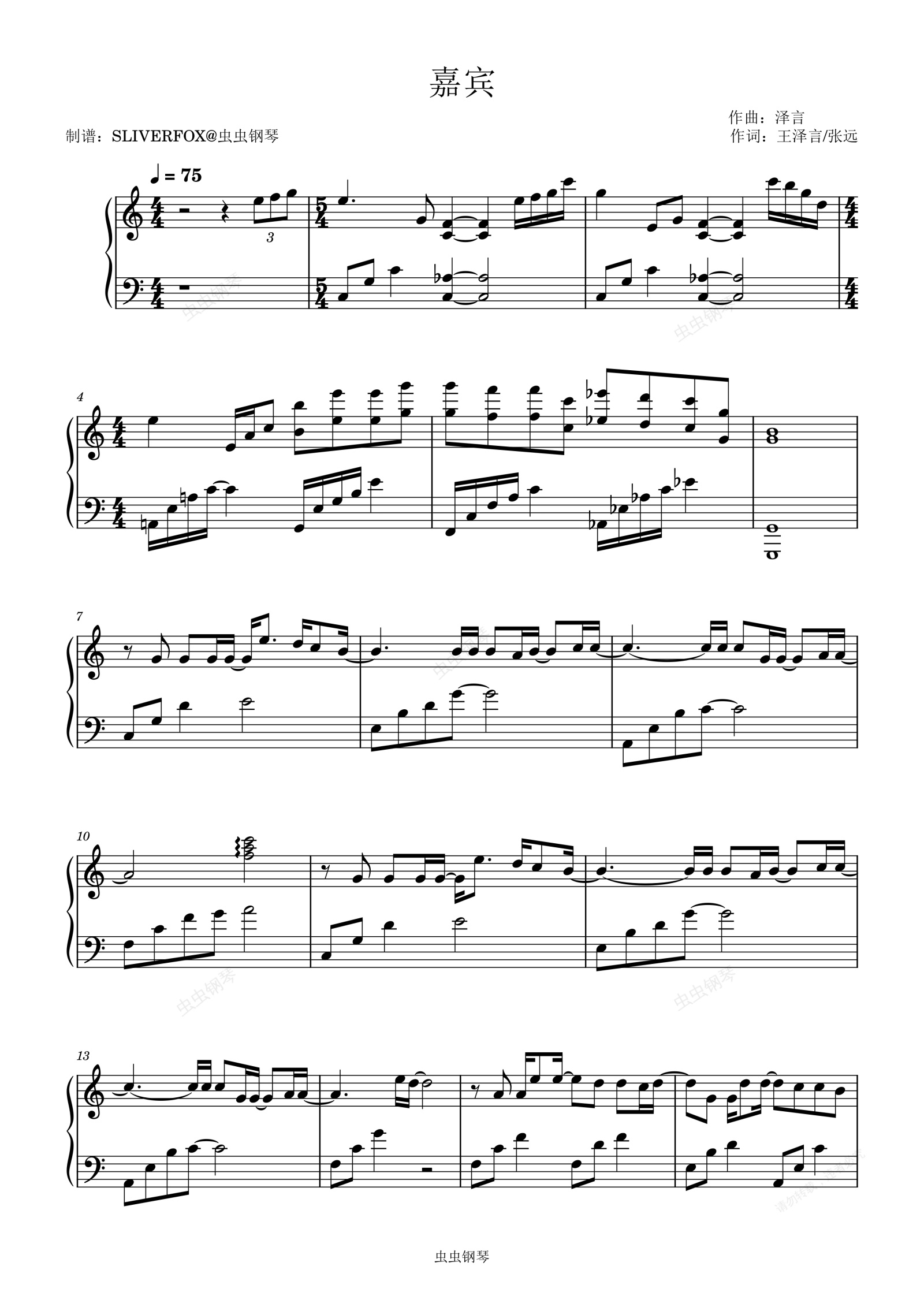 钢琴谱:《嘉宾》成人流行钢琴谱 C调 失恋伤感