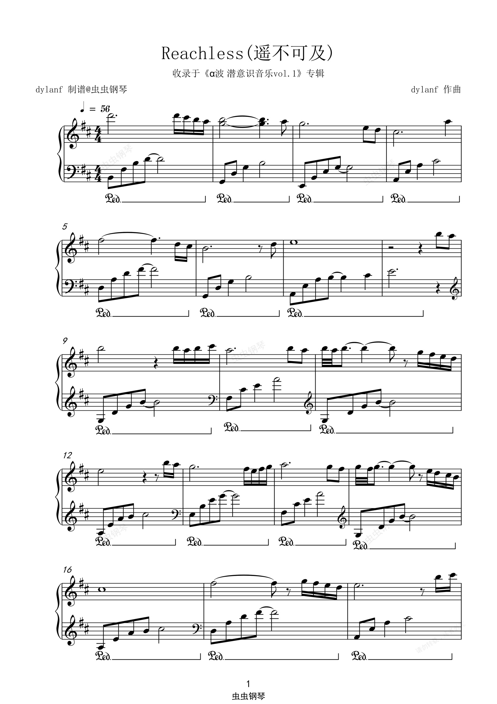 钢琴谱:Reachless(遥不可及)α波 潜意识音乐 dylanf 星光钢琴曲