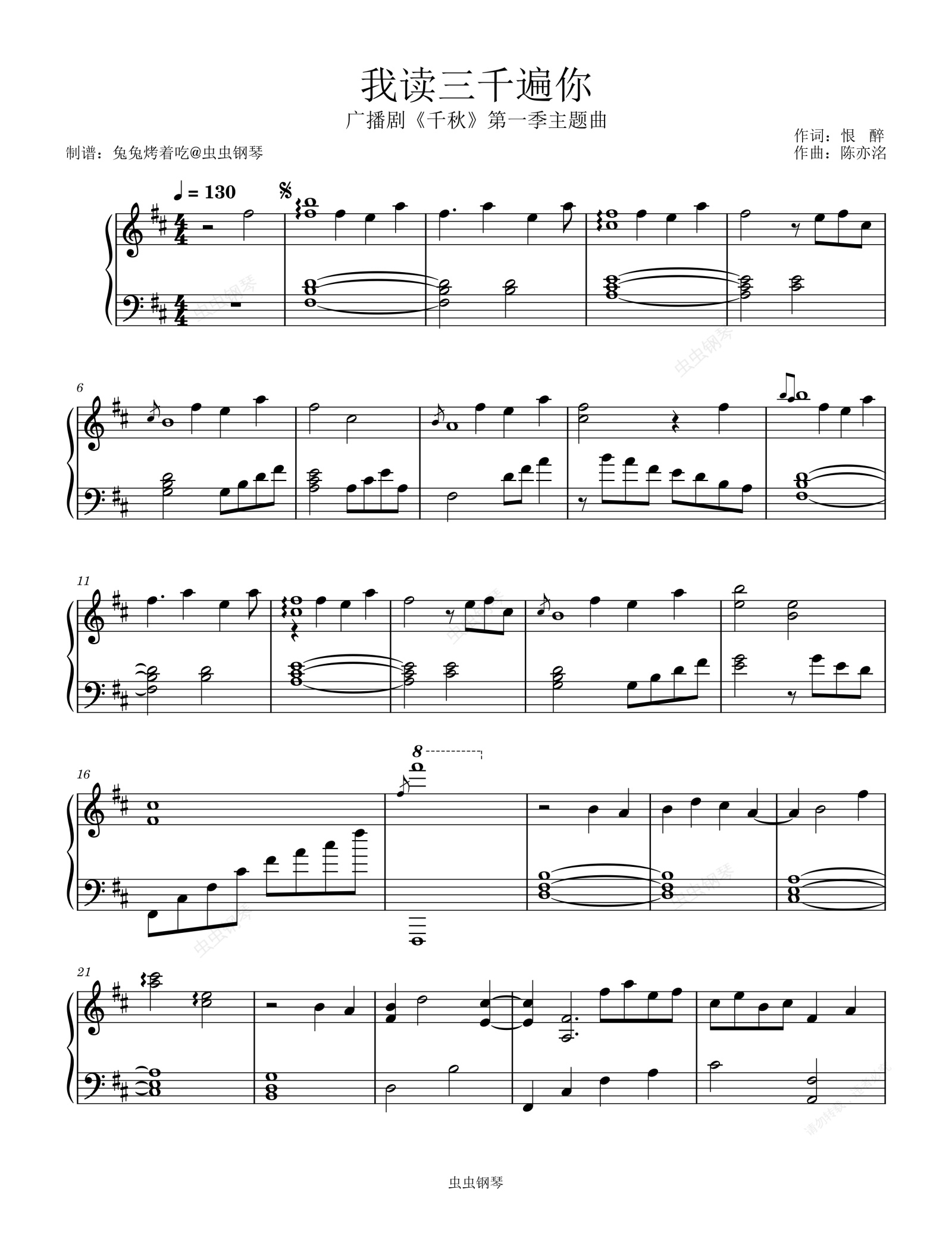 钢琴谱:《我读三千遍你》千秋第一季主题曲