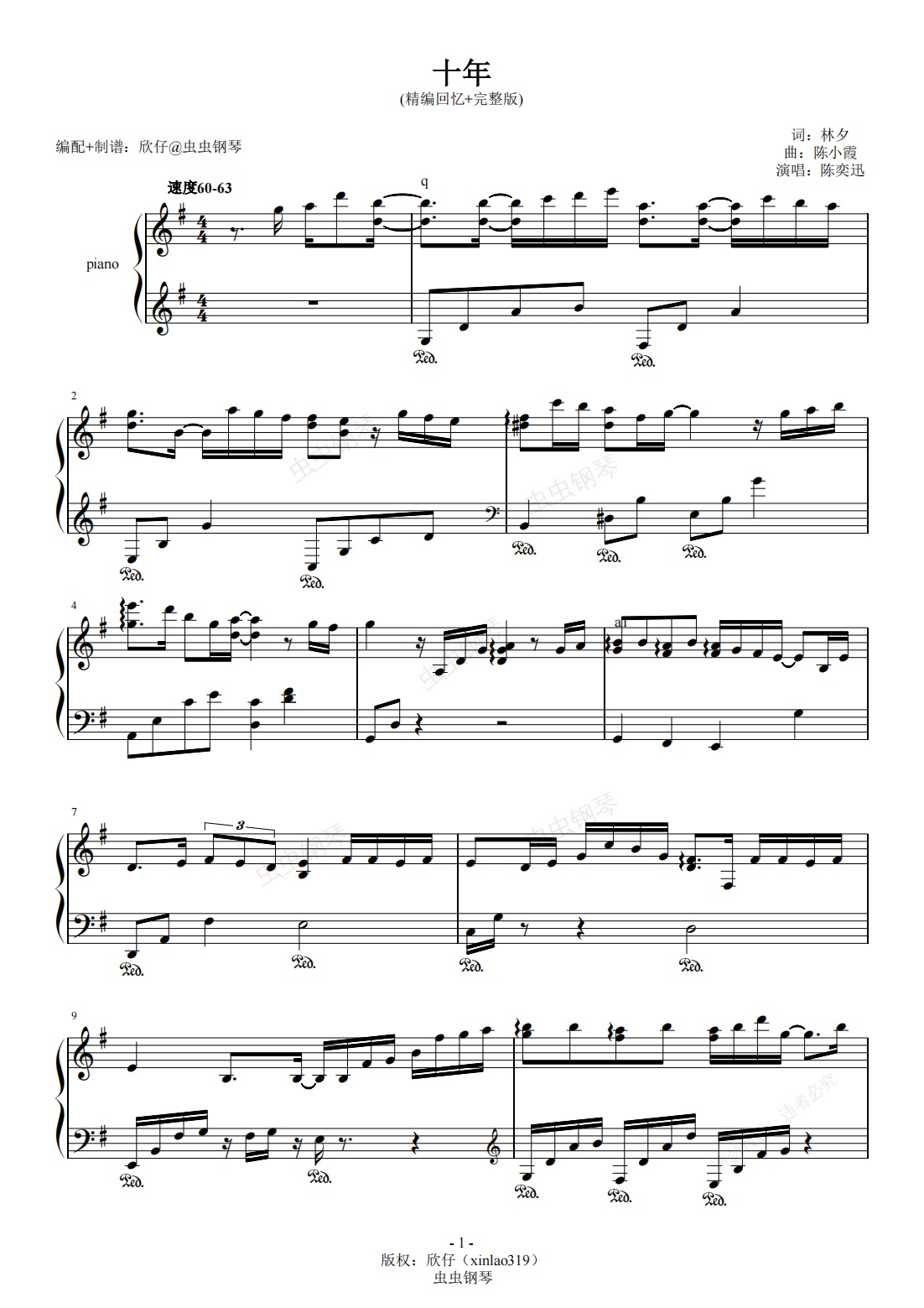 钢琴谱:陈奕迅-G《十年》(精编回忆+完整版)