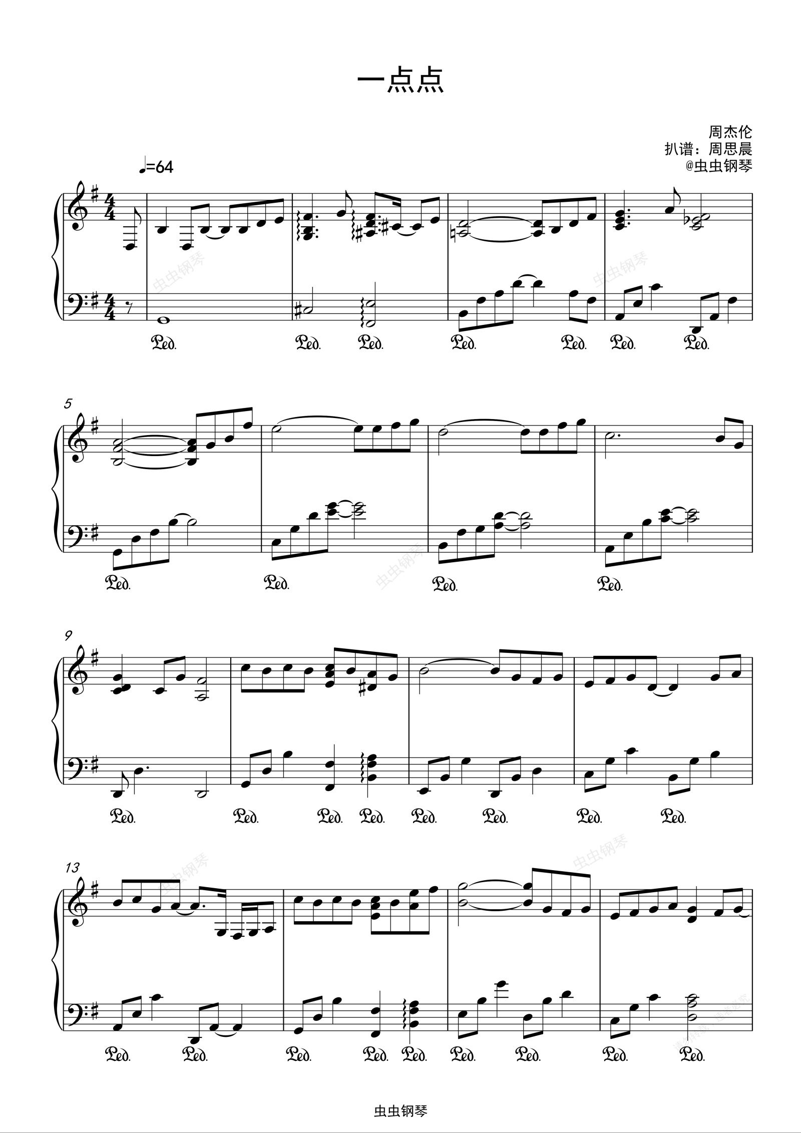 钢琴谱:周杰伦《一点点》原调独奏
