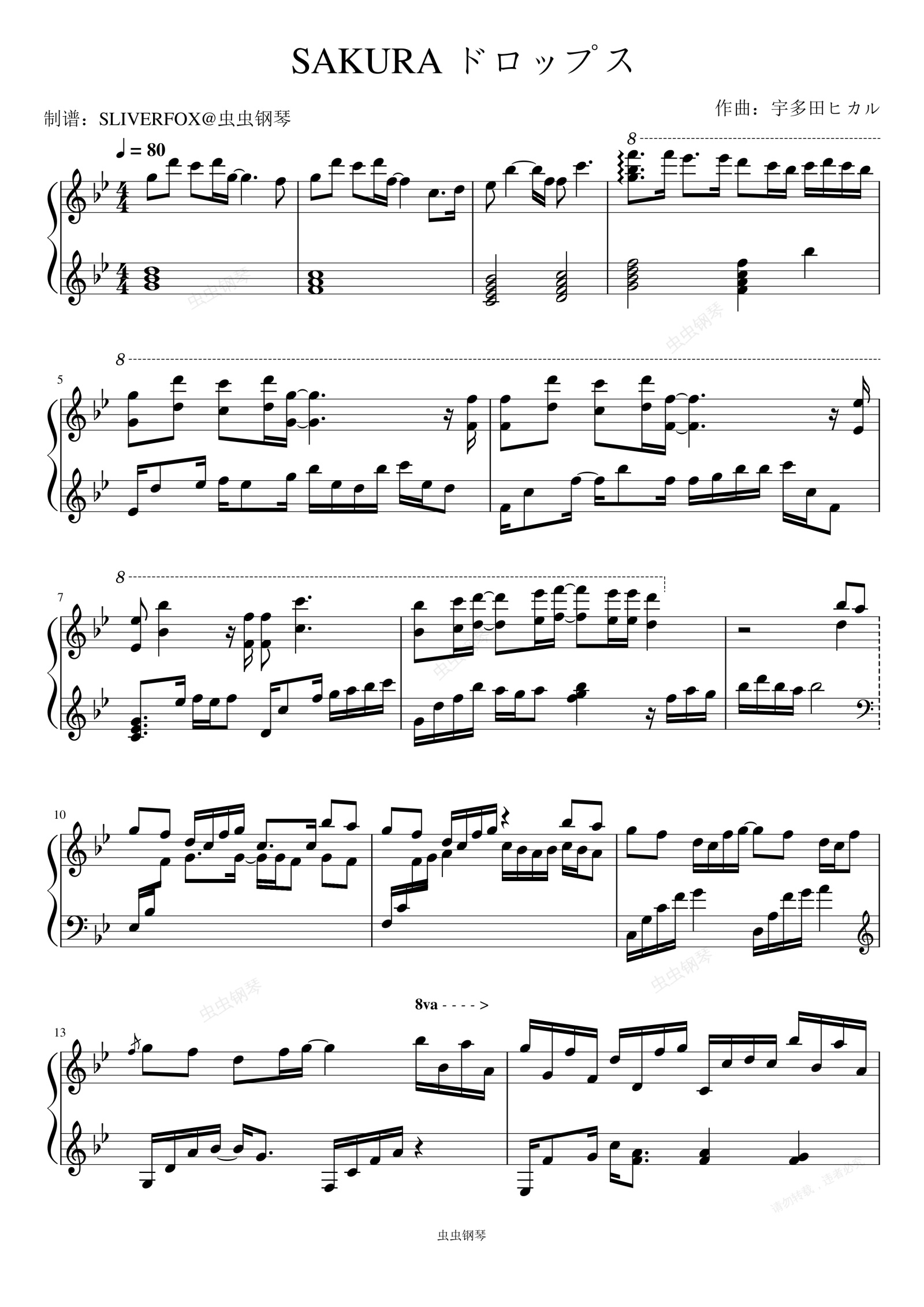 钢琴谱:《SAKURA ドロップス》(20年前一首很火的宇多田光歌曲)