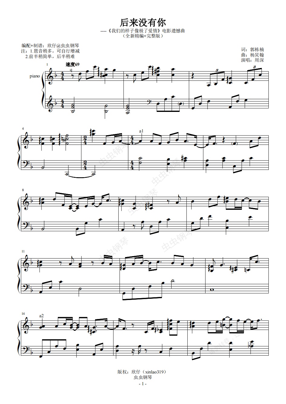 钢琴谱:周深-F《后来没有你》(全新精编+完整版)