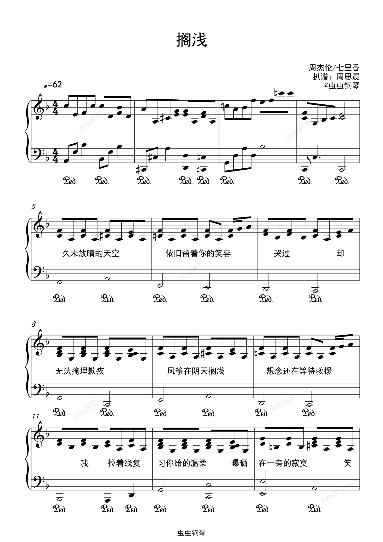钢琴谱:《搁浅》F调完美弹唱版 周杰伦
