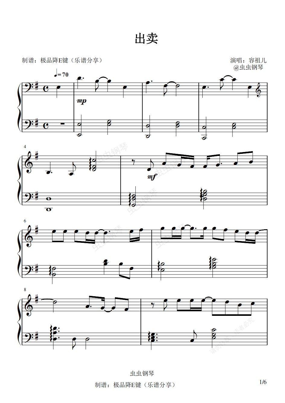 钢琴谱:出卖(容祖儿)2022倾心优化