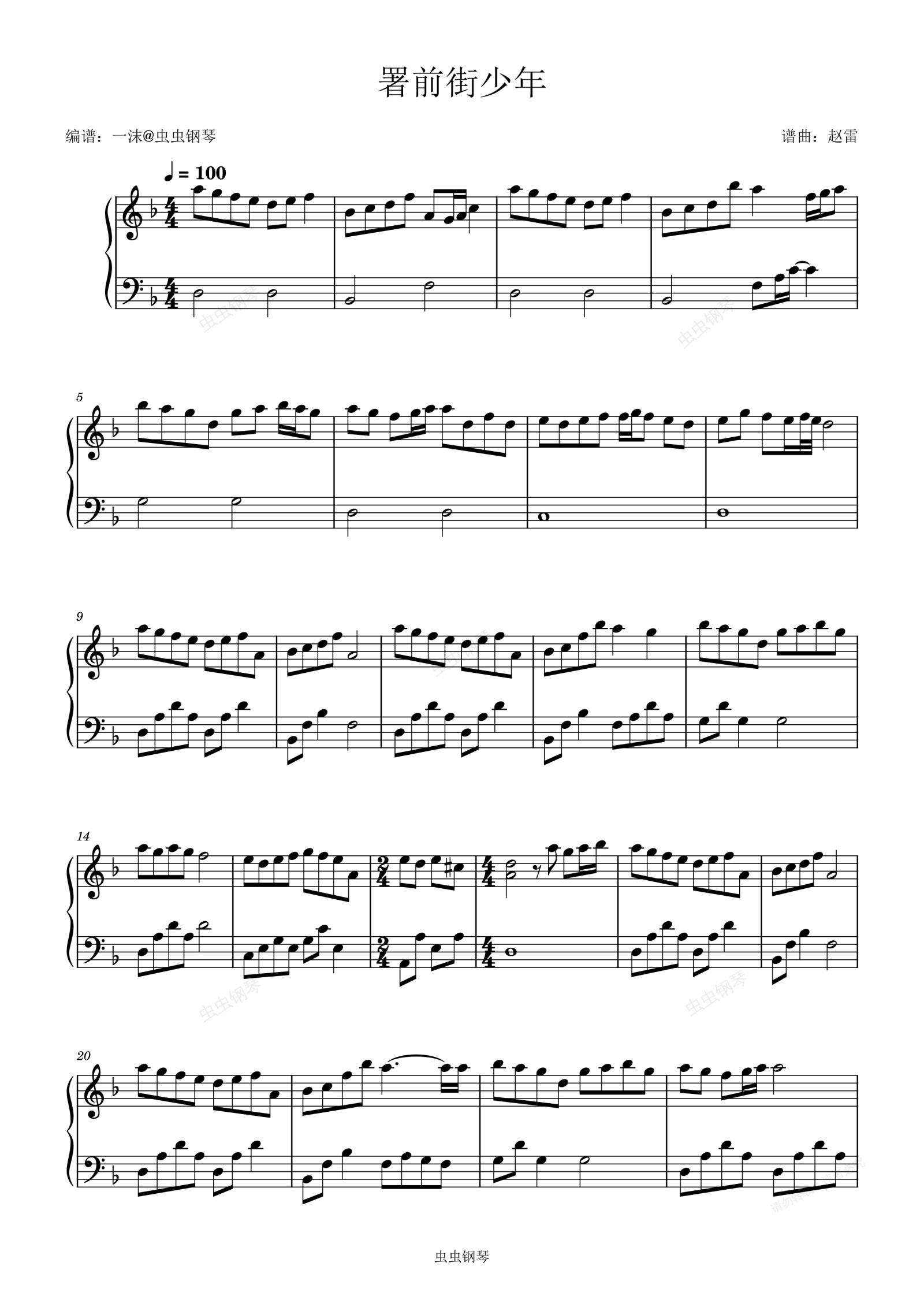 钢琴谱:赵雷-署前街少年 钢琴独奏