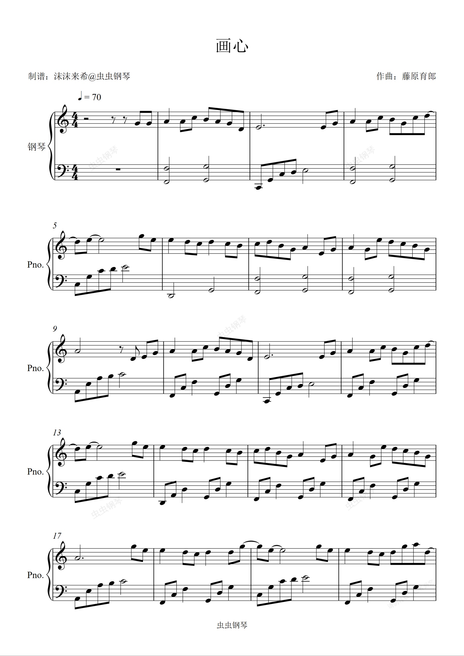 钢琴谱:《画心》张靓颖 C调 简易版 初学者
