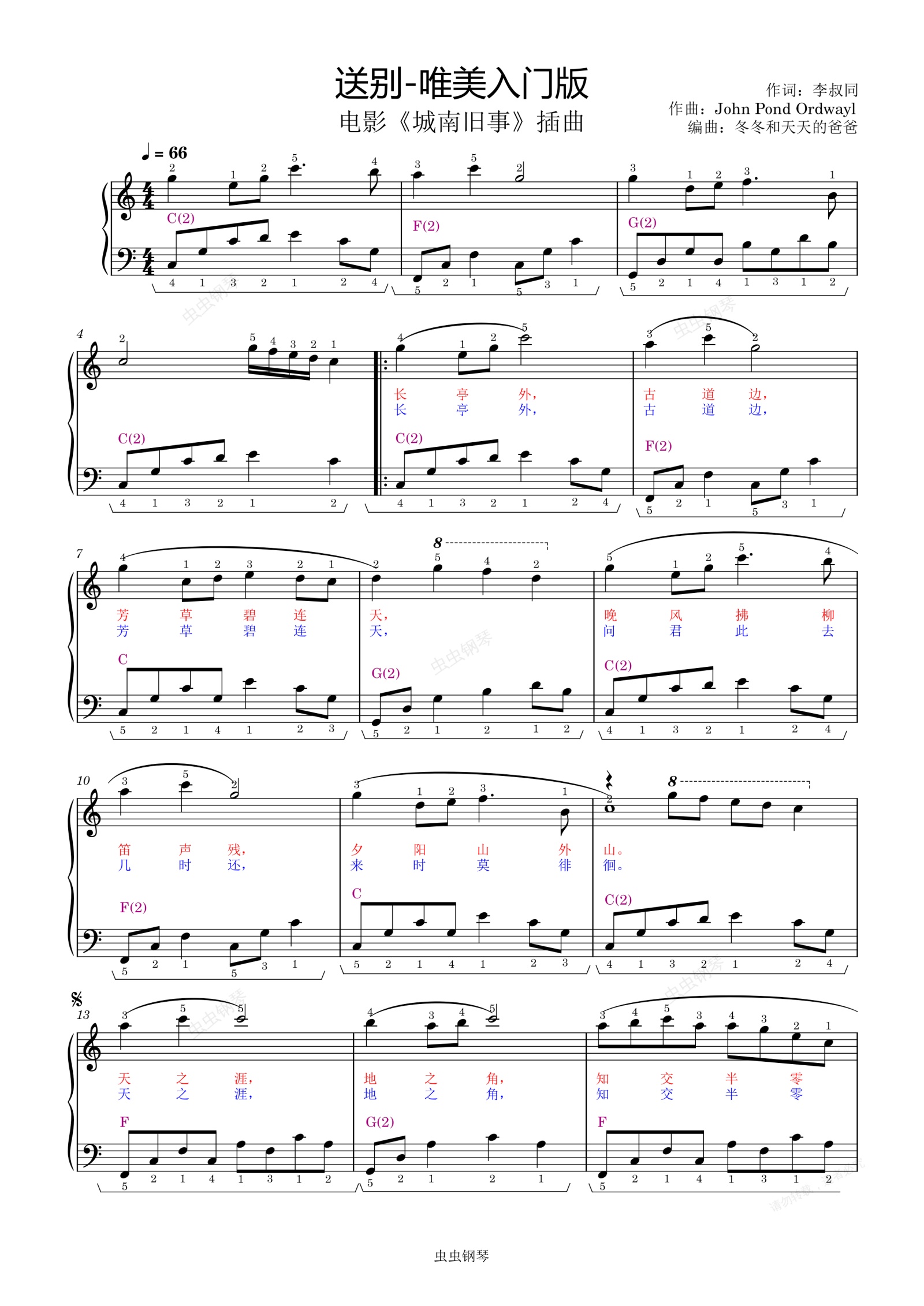 钢琴谱:送别——入门完整版《城南旧事》插曲