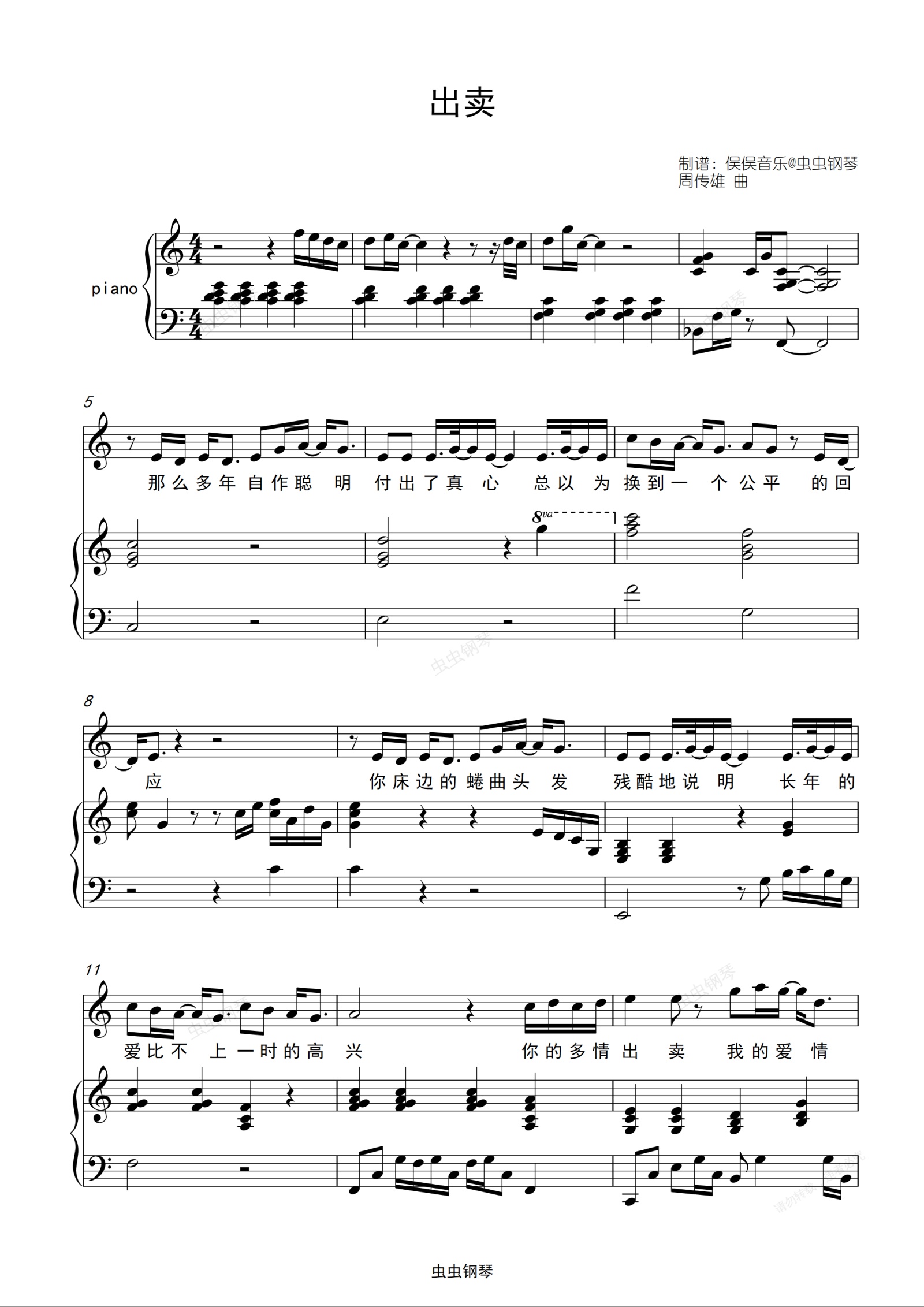 钢琴谱:出卖