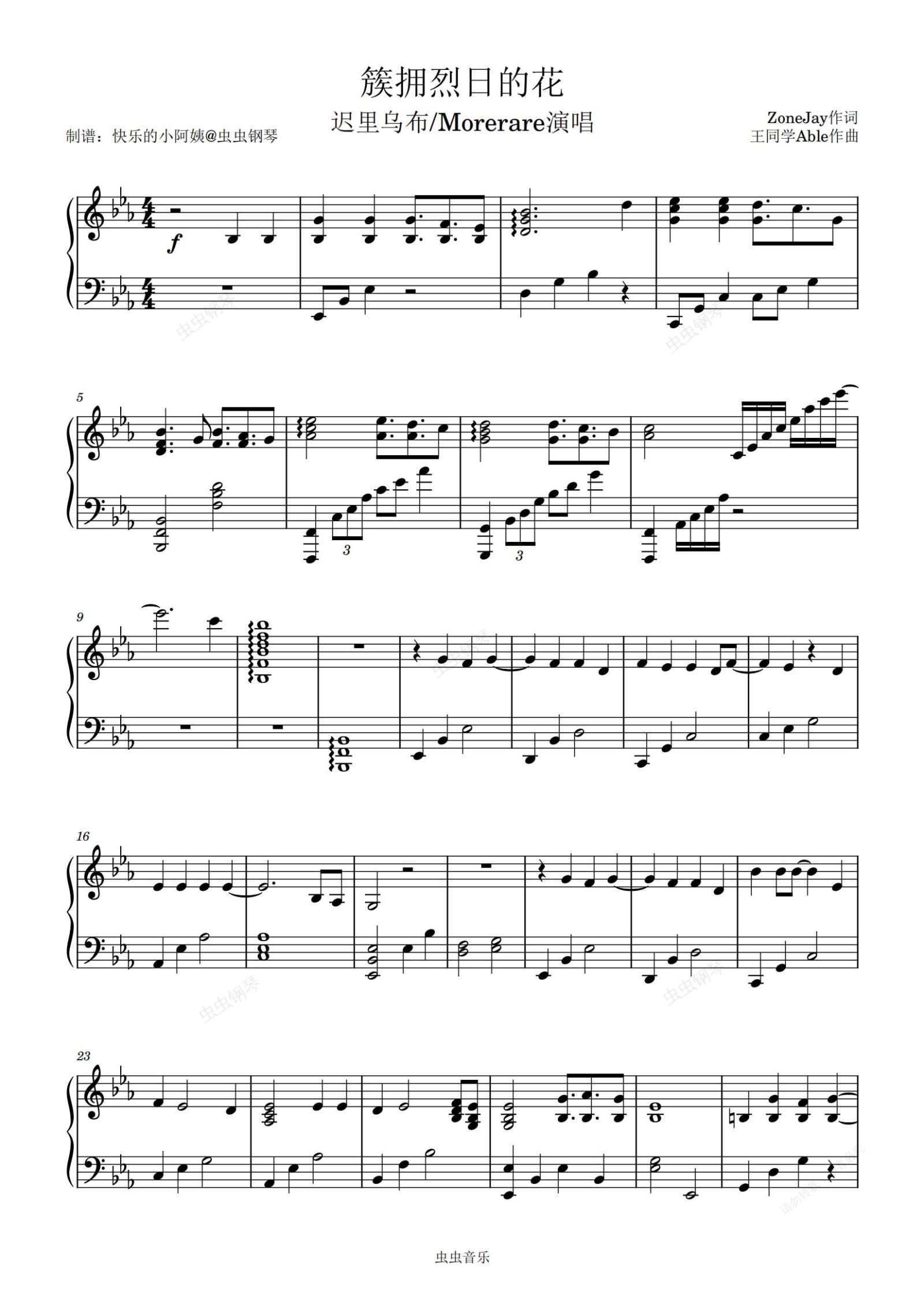 钢琴谱:簇拥烈日的花 - 迟里乌布