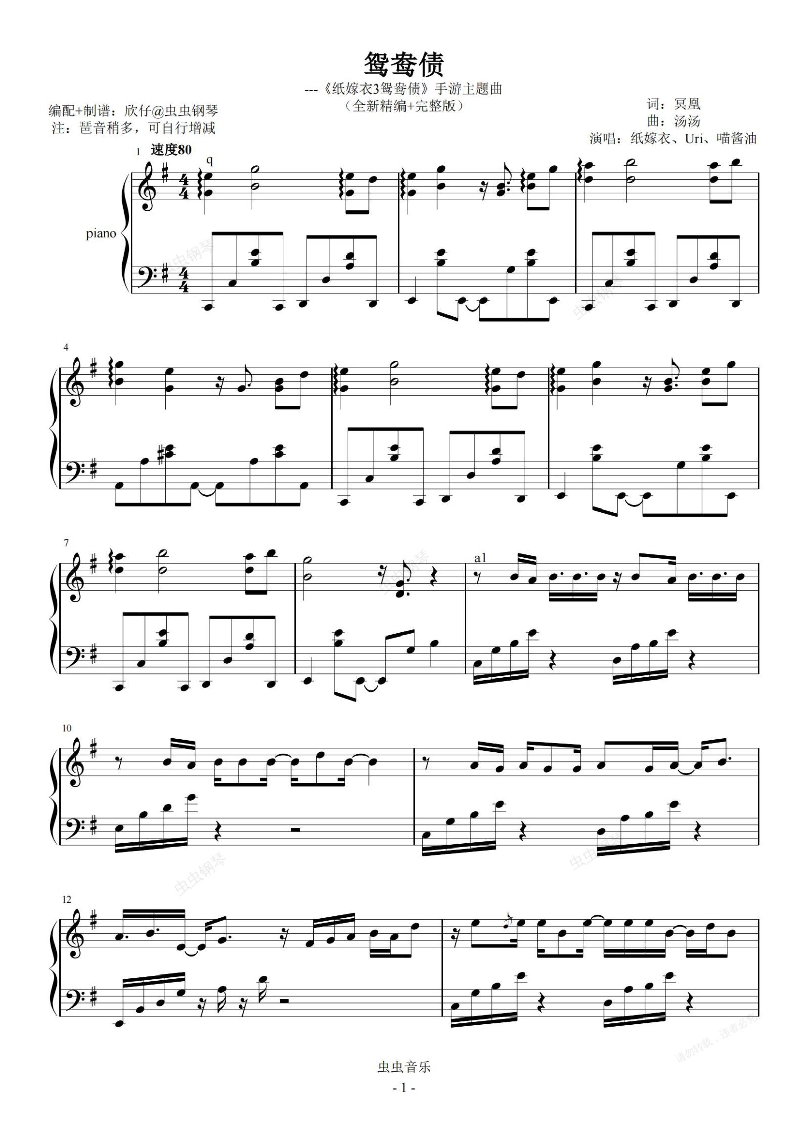 钢琴谱:纸嫁衣-e《鸳鸯债》(全新精编+完整版)