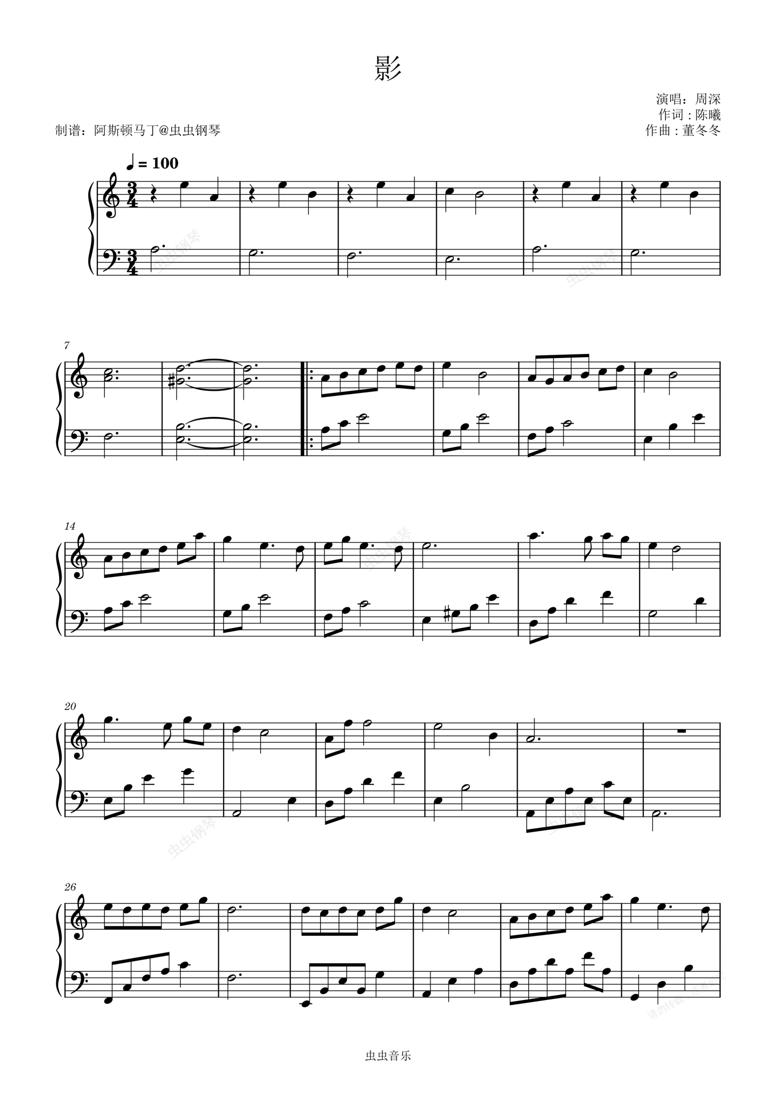 钢琴谱:影 - 周深 独奏