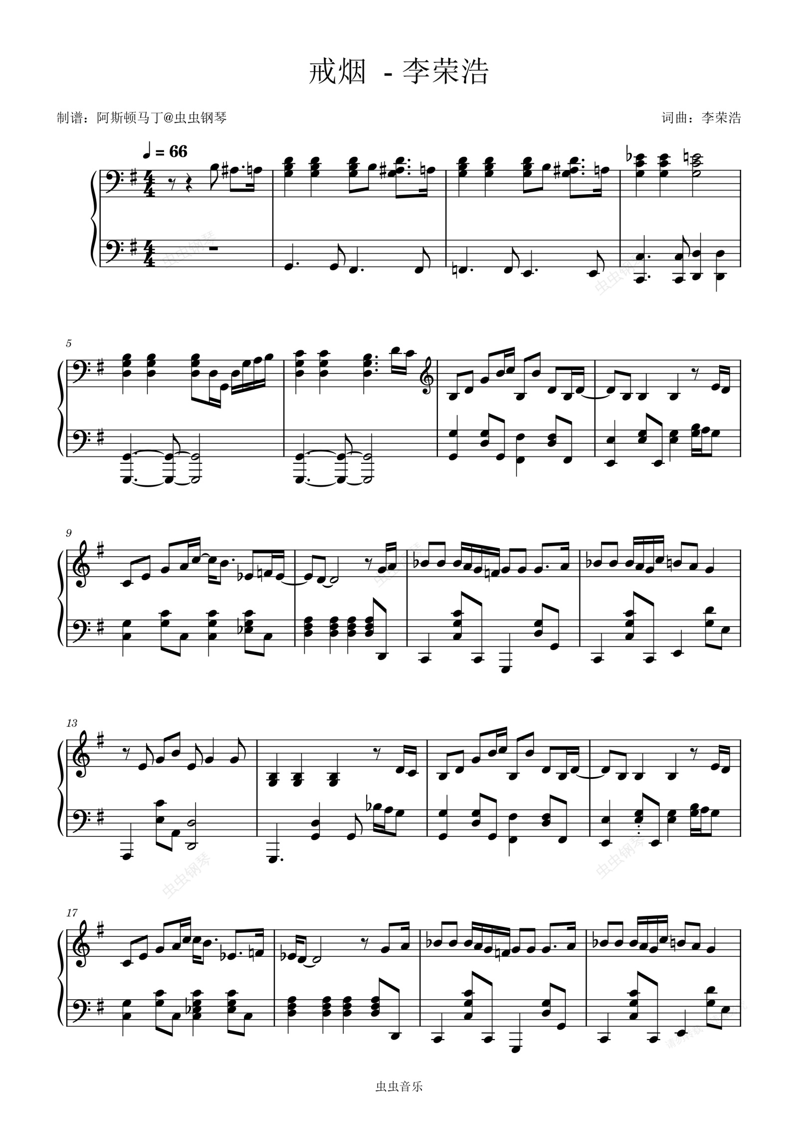 钢琴谱:戒烟 - 李荣浩【独奏】