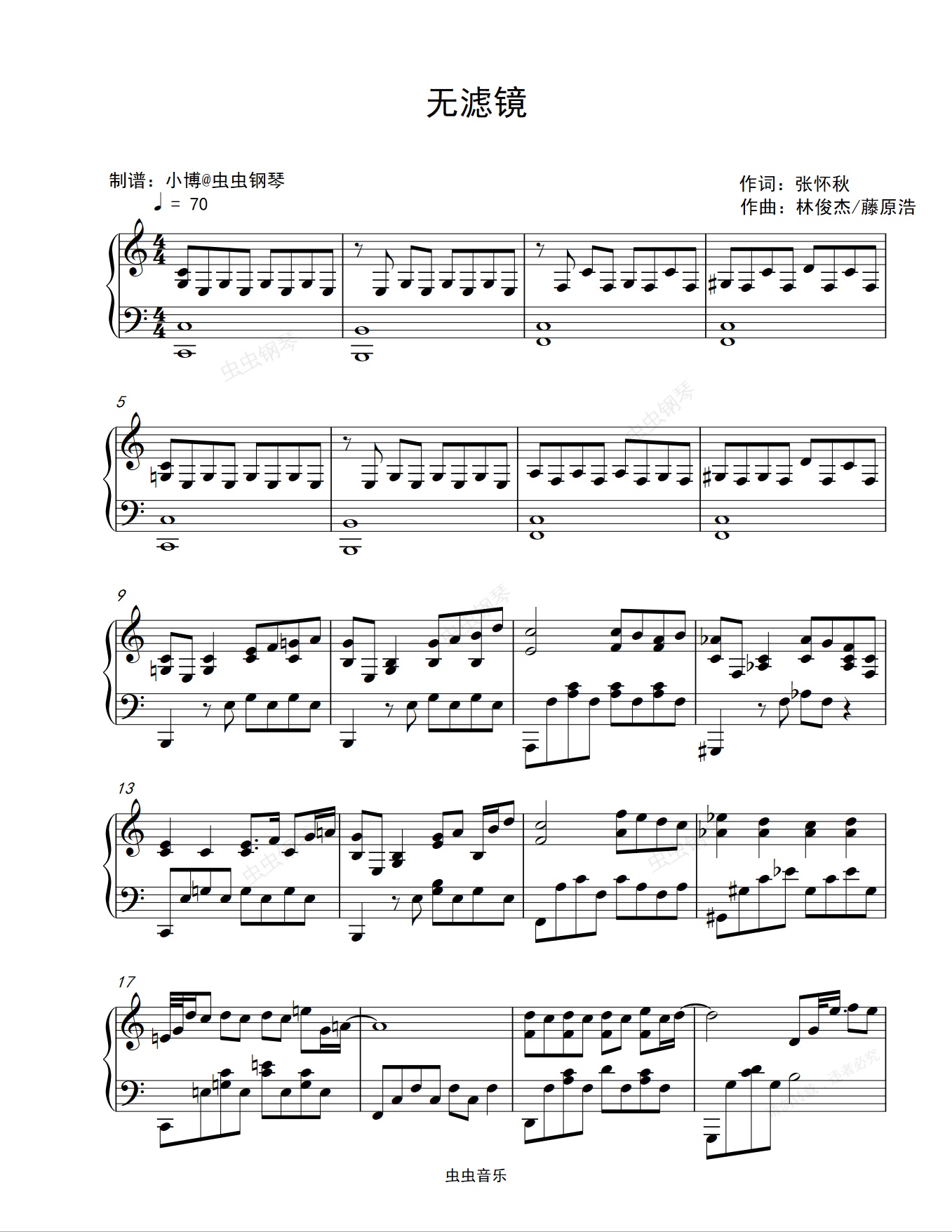 钢琴谱:无滤镜-林俊杰藤原浩跨界合作时尚单曲