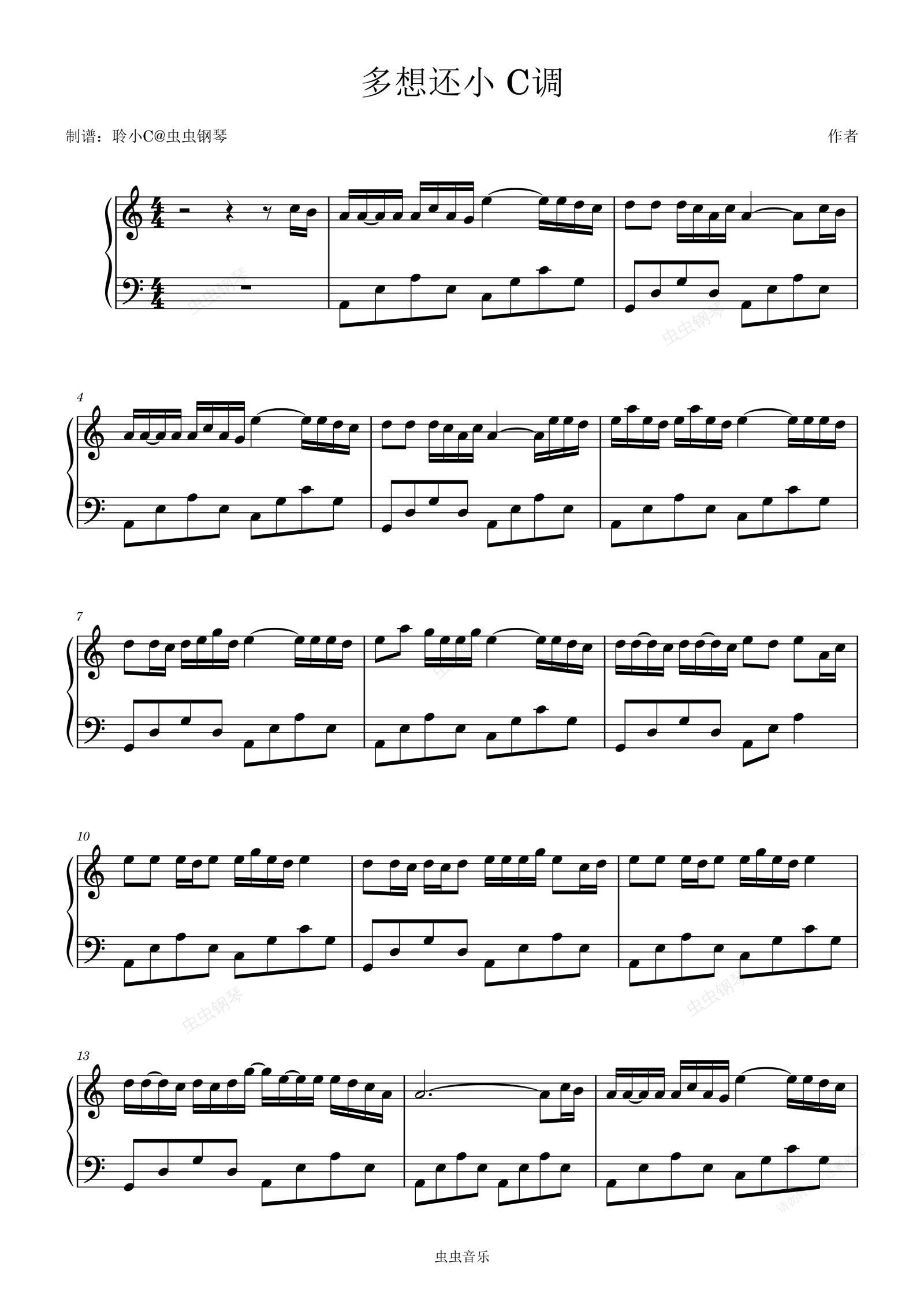 钢琴谱:多想还小[豆包] C调超级好上手版
