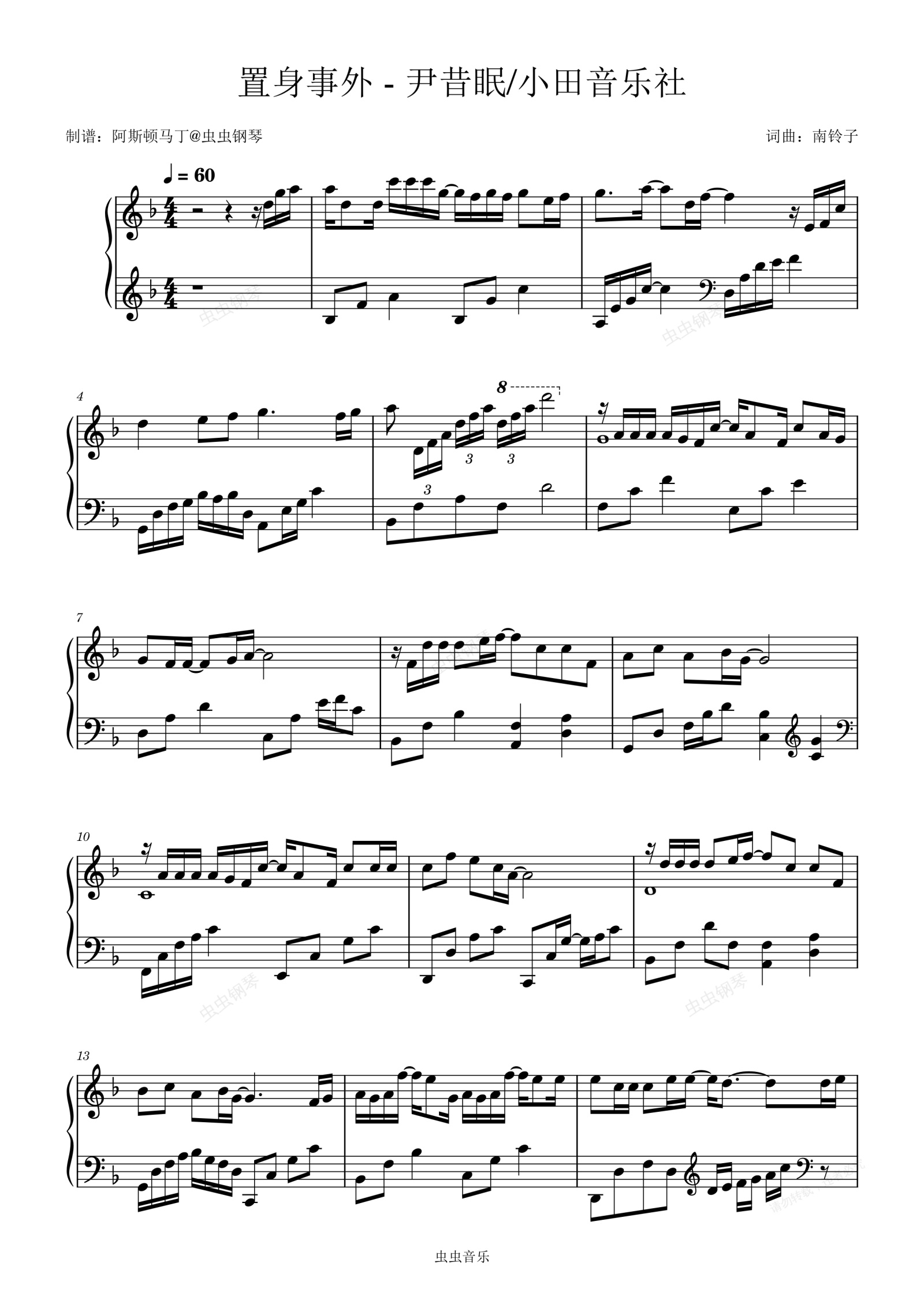 钢琴谱:置身事外 - 尹昔眠/小田音乐社【独奏】