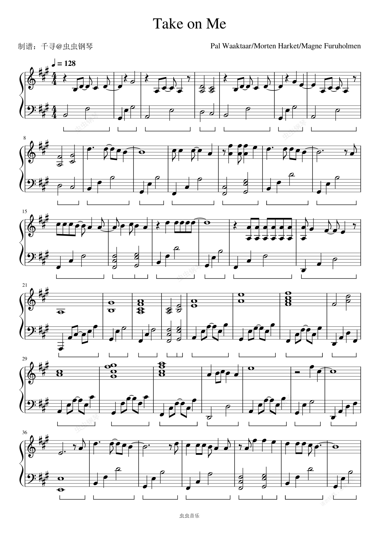 钢琴谱:Take on Me (MTV Unplugged - Summer Solstice) - A-Ha