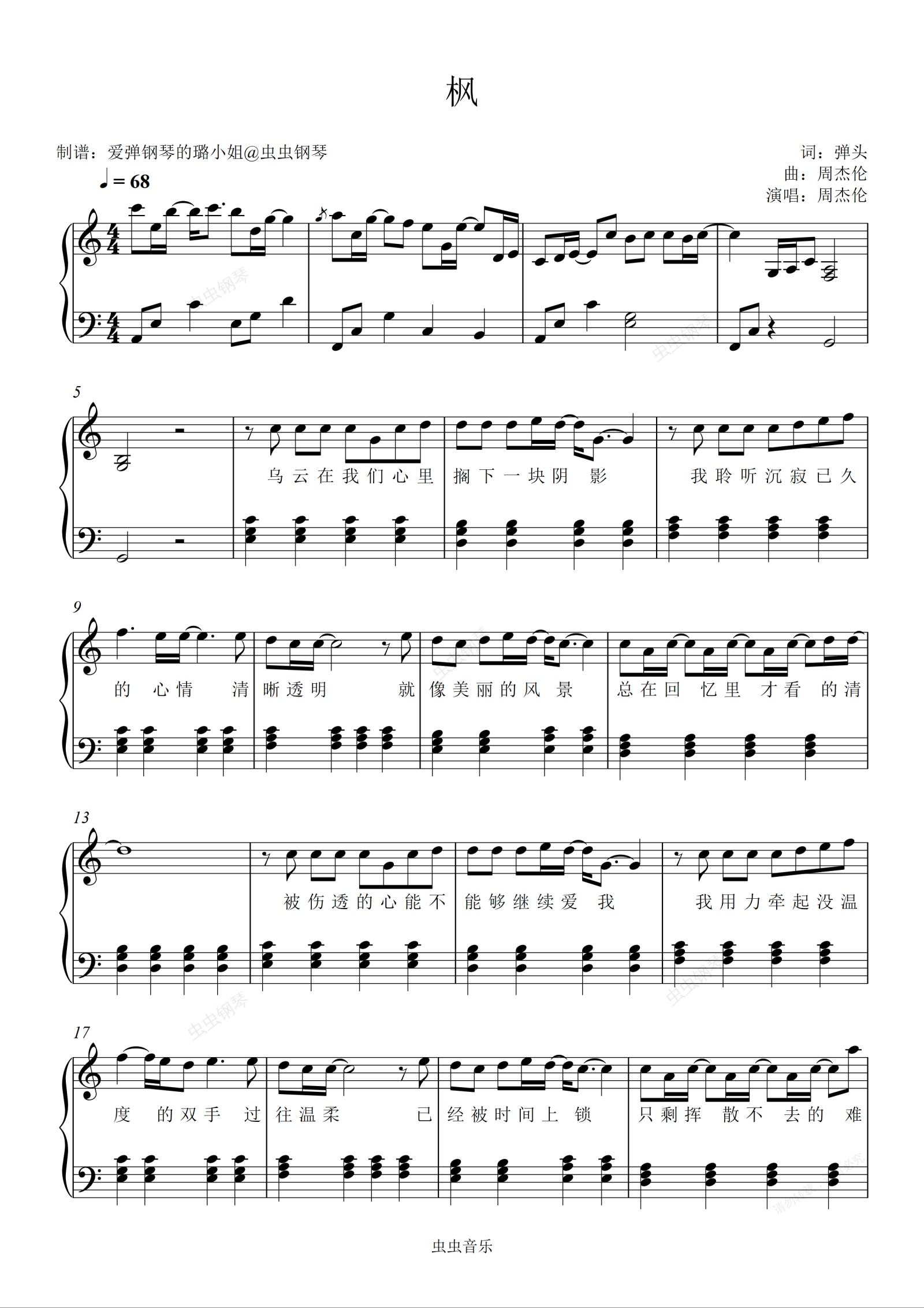 钢琴谱:枫 - C调完美简化版 - 附歌词