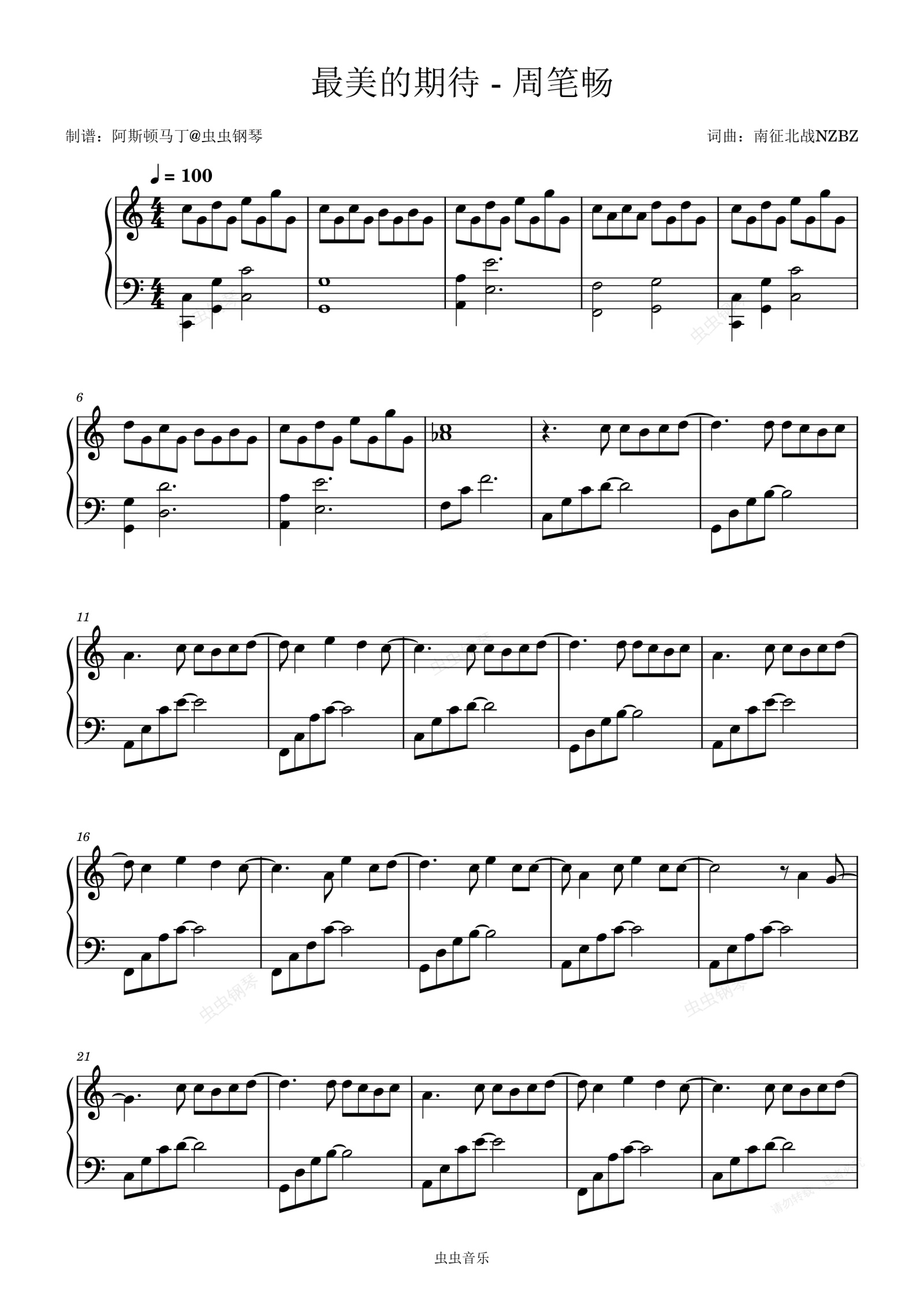 钢琴谱:最美的期待 - 周笔畅【独奏】