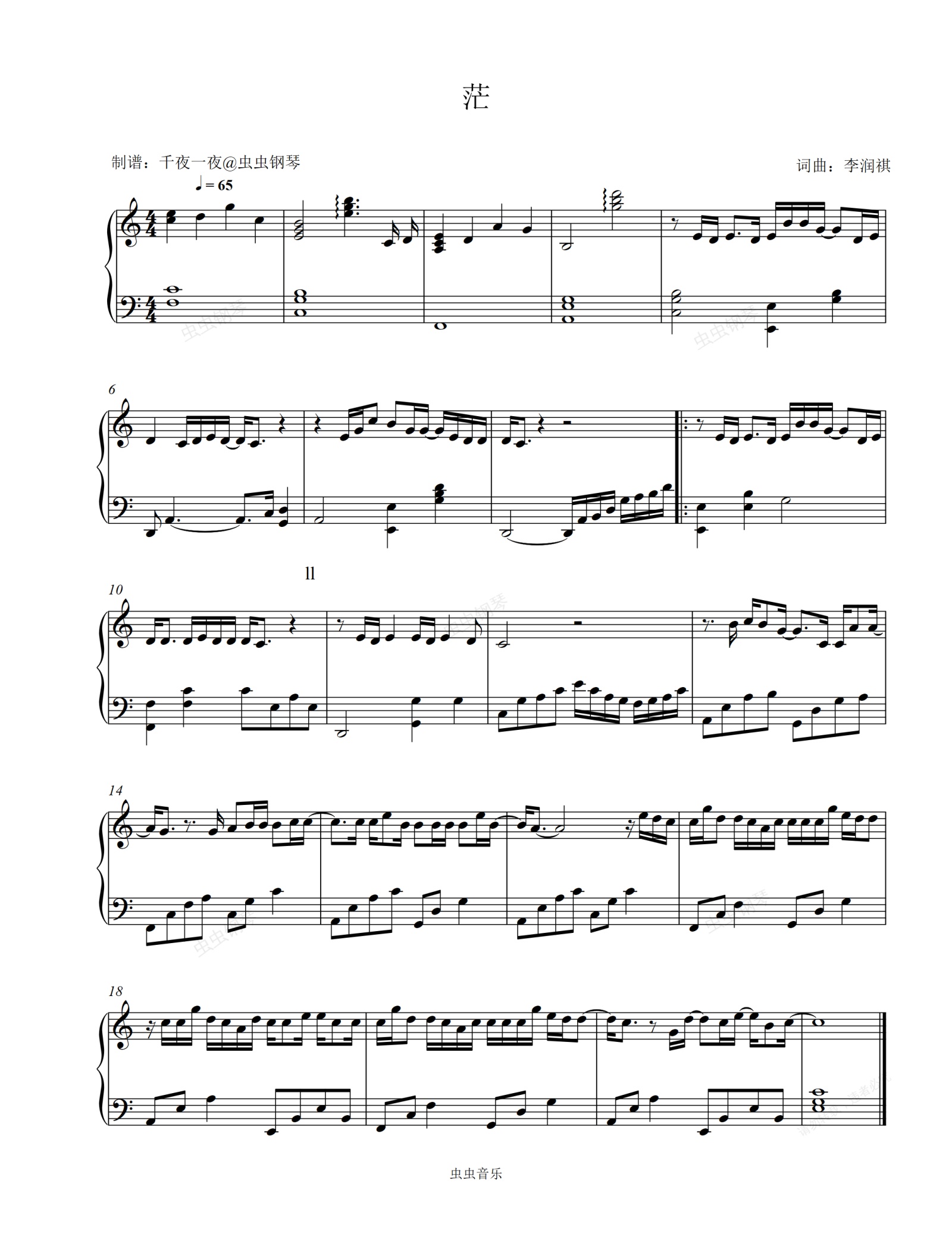 钢琴谱:【钢琴】李润祺 – 茫钢琴抒情版 Piano Cover