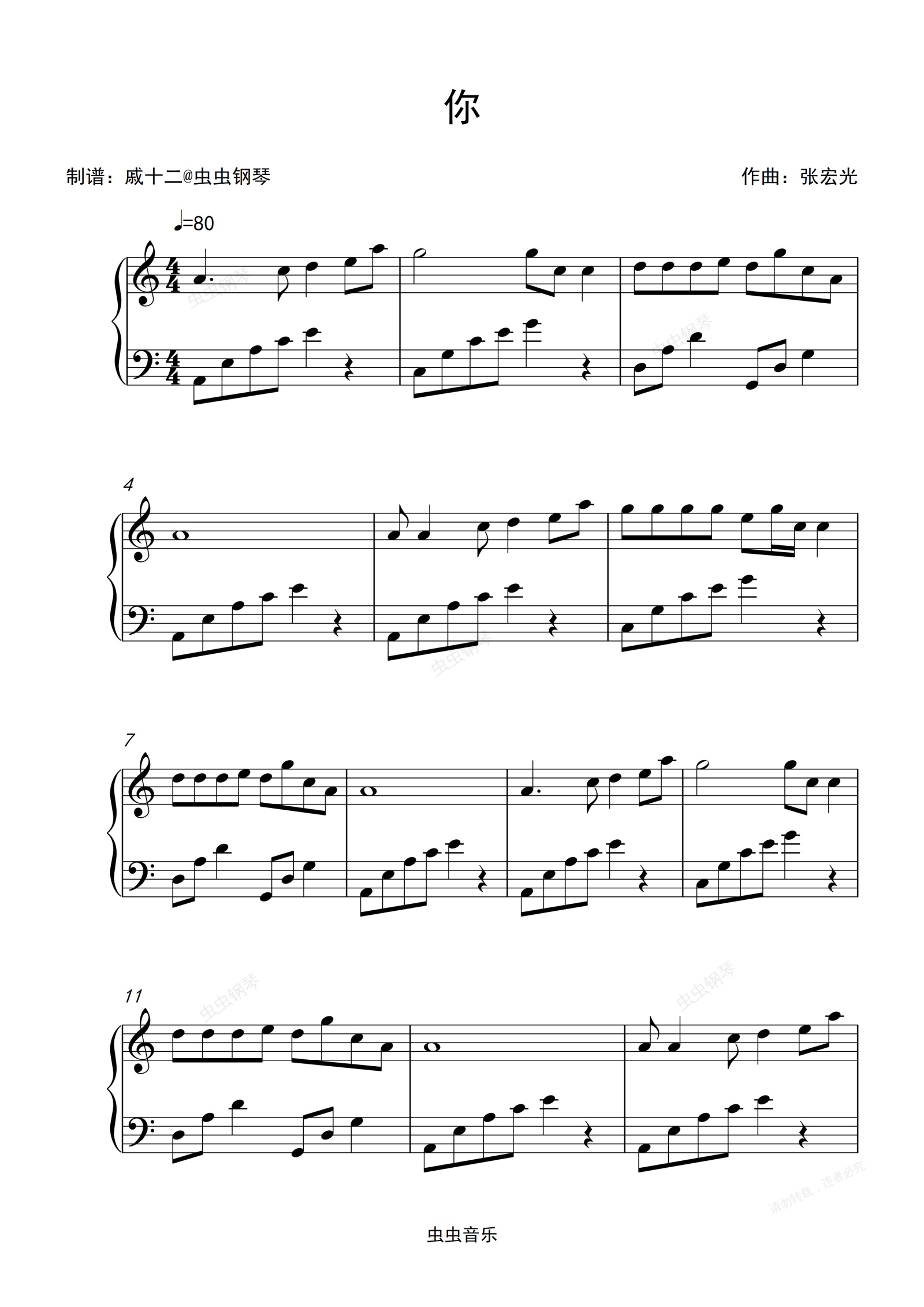 钢琴谱:你《孝庄秘史》主题曲-C调简单版