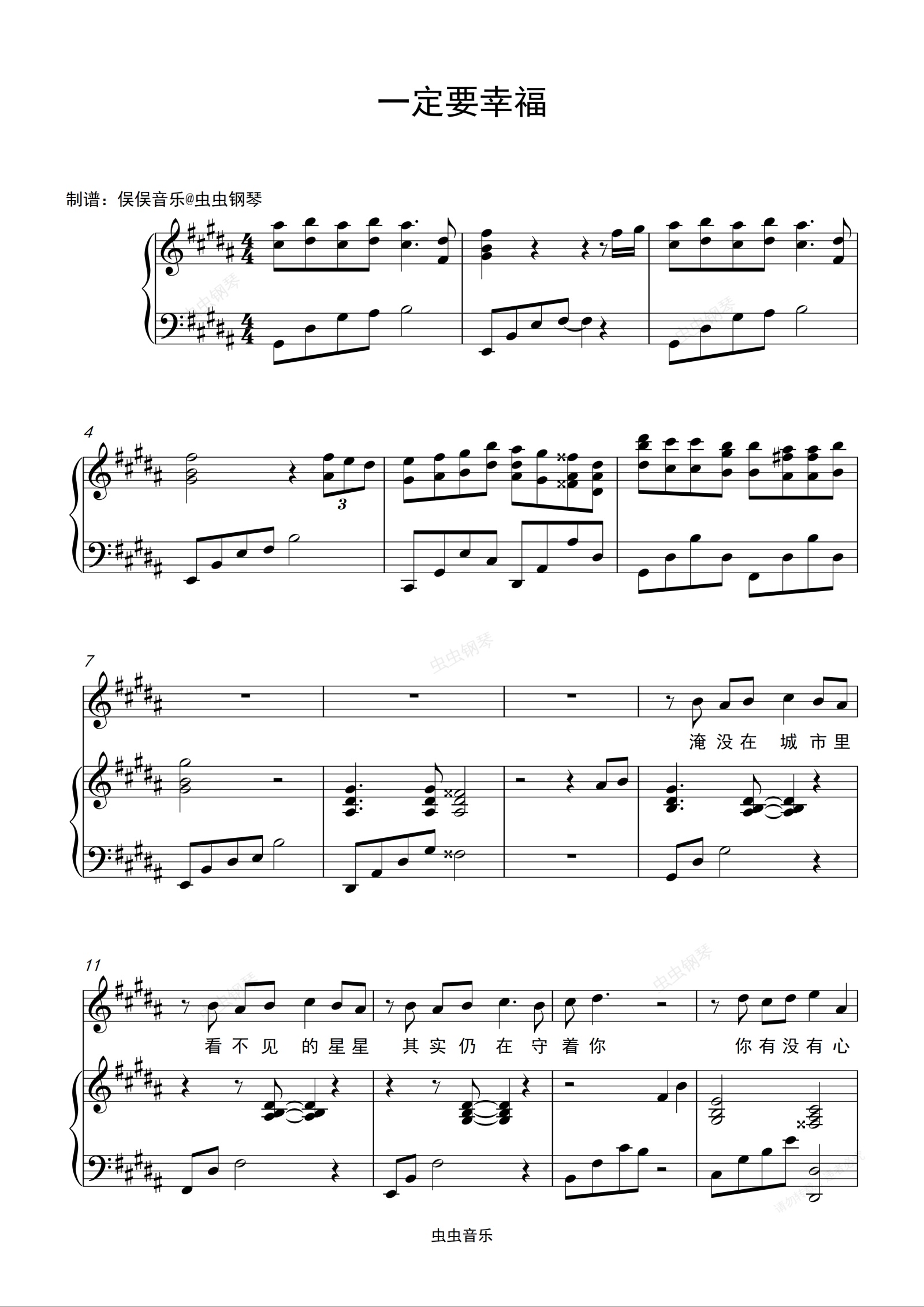 钢琴谱:【蒙面唱将】萱萱 - 一定要幸福(伴奏谱)