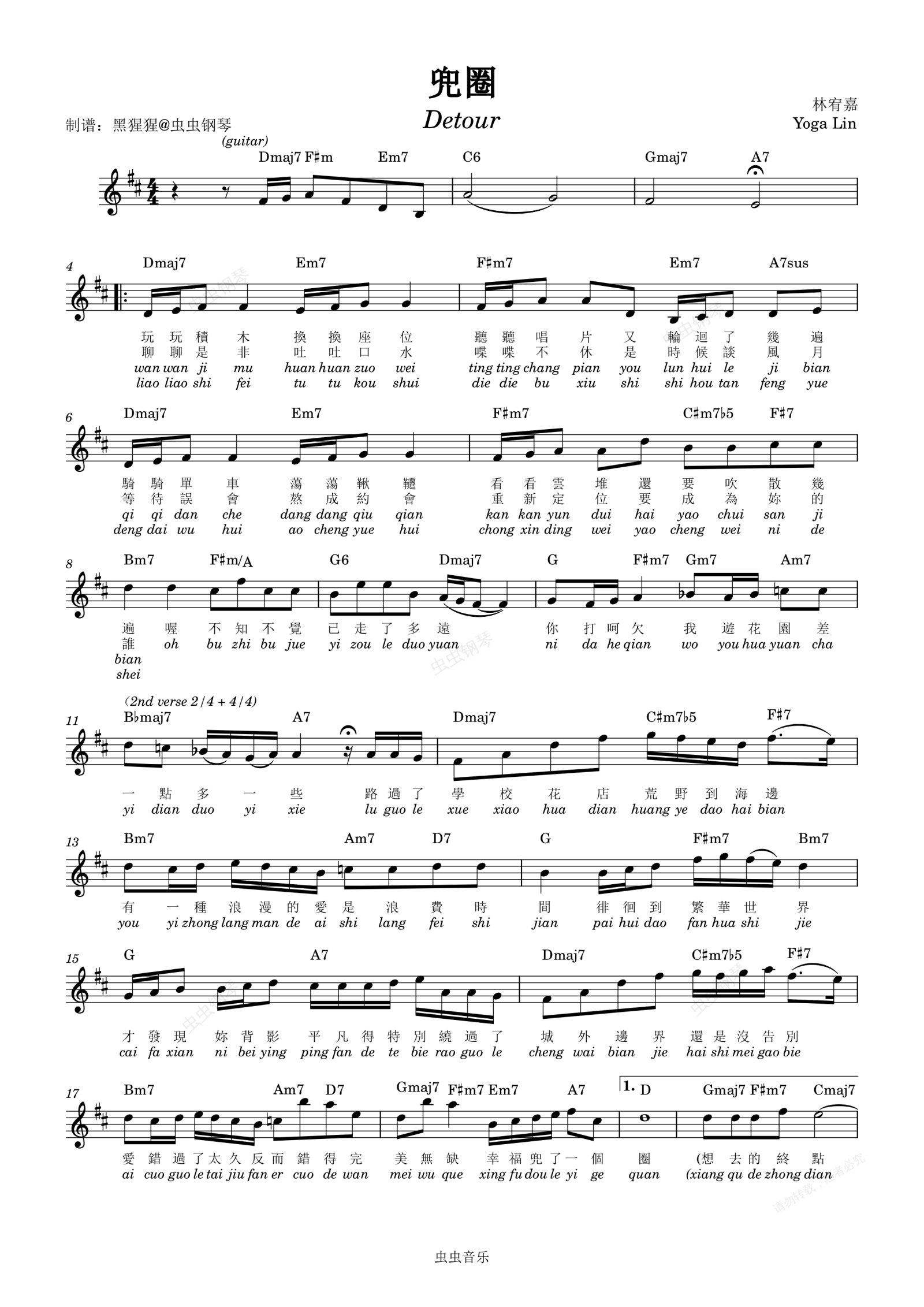 钢琴谱:林宥嘉-D调 《兜圈》【带歌词】