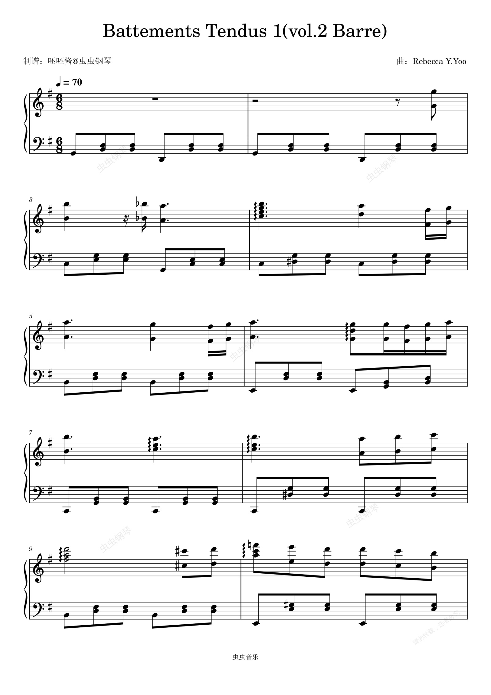 钢琴谱:Battements Tendus 1(vol.2 Barre)-独奏还原-G调