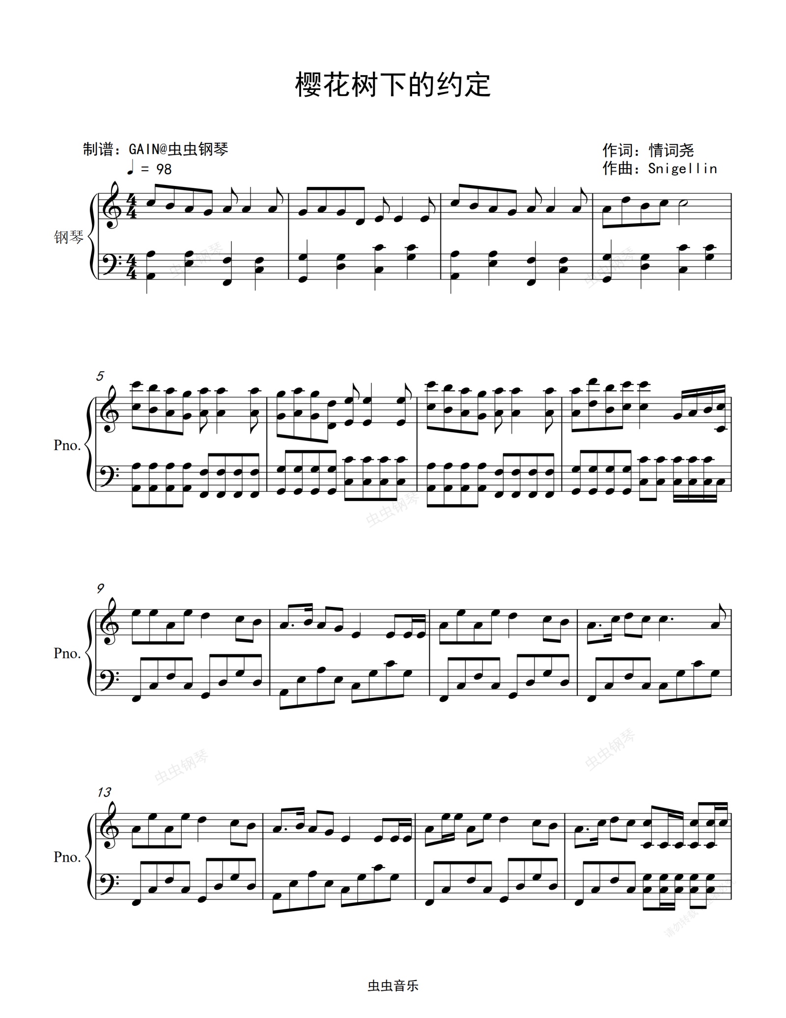 钢琴谱:樱花树下的约定-激情版-旺仔小乔