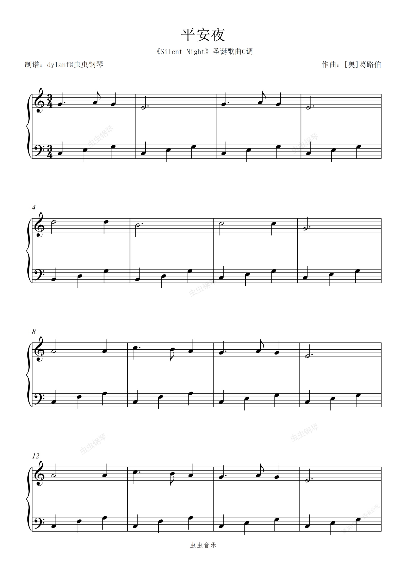 钢琴谱:C调Silent Night平安夜 经典圣诞节歌曲 安静的夜 Merry Christmas