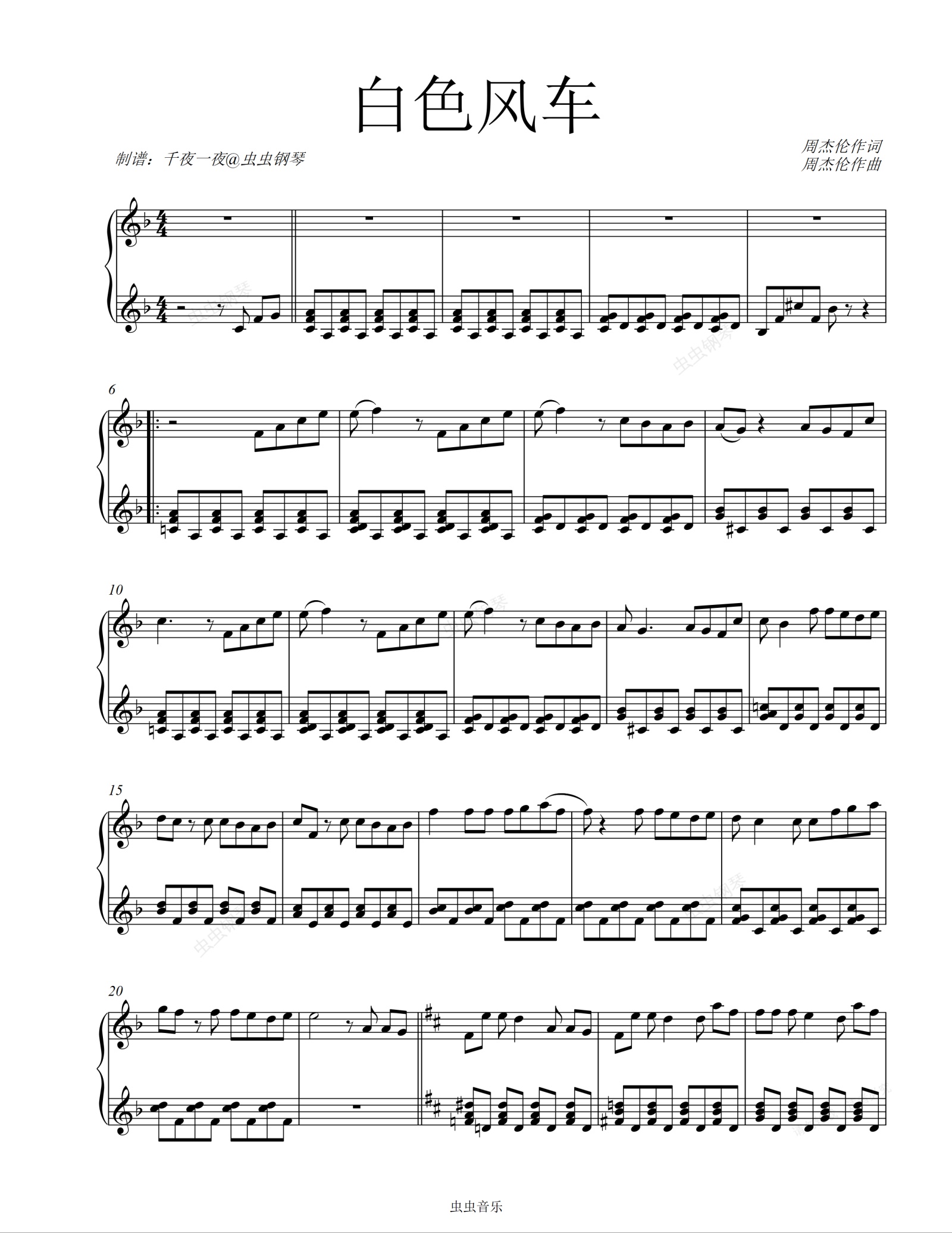 钢琴谱:钢琴】白色风车|那些年我们听过的周杰伦