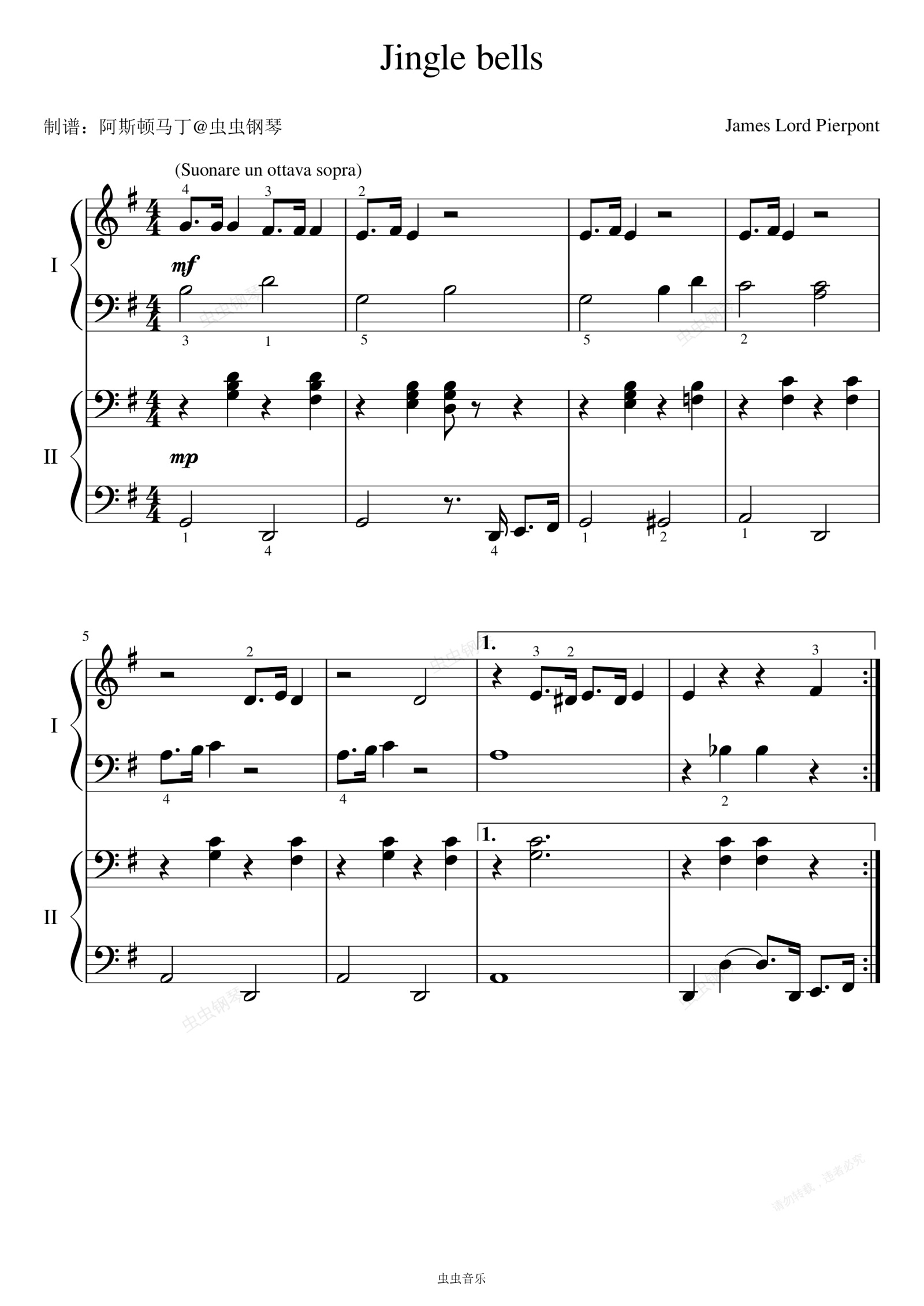 钢琴谱:Jingle bells 铃儿响叮当 四手联弹