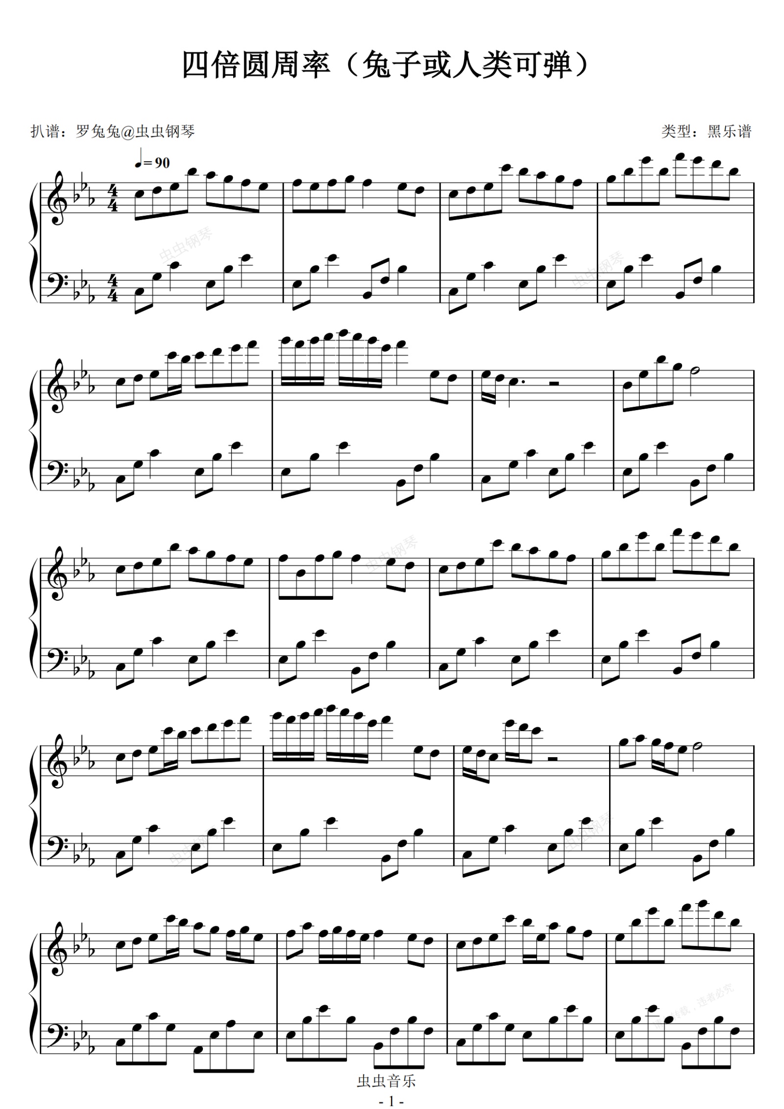 钢琴谱:四倍圆周率(兔子或人类可弹)