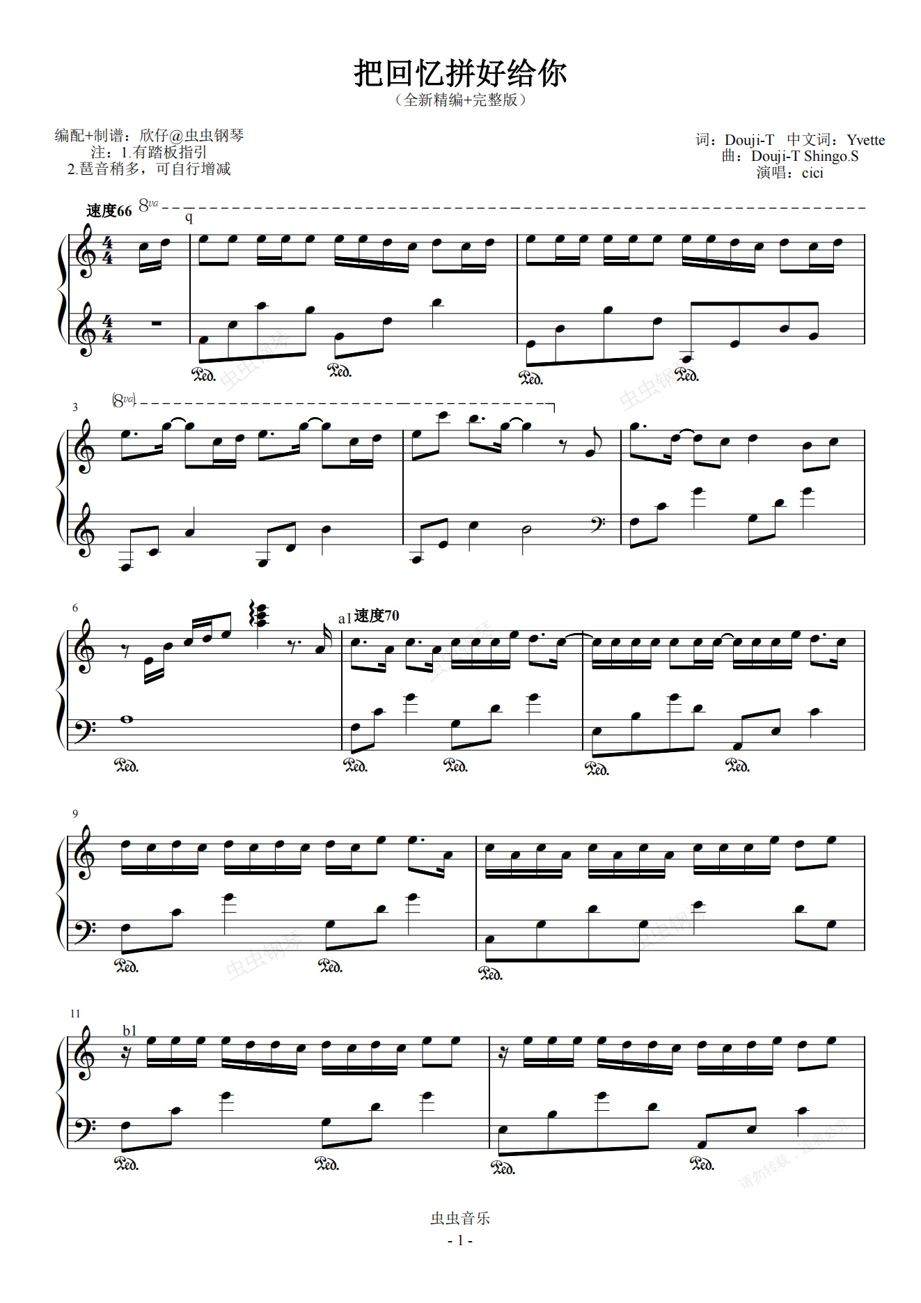 钢琴谱:cici-C《把回忆拼好给你》(全新精编+完整版)