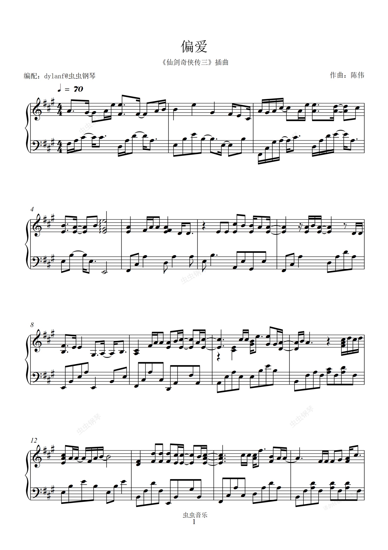 钢琴谱:偏爱《仙剑奇侠传三》插曲 好听好弹 张芸京