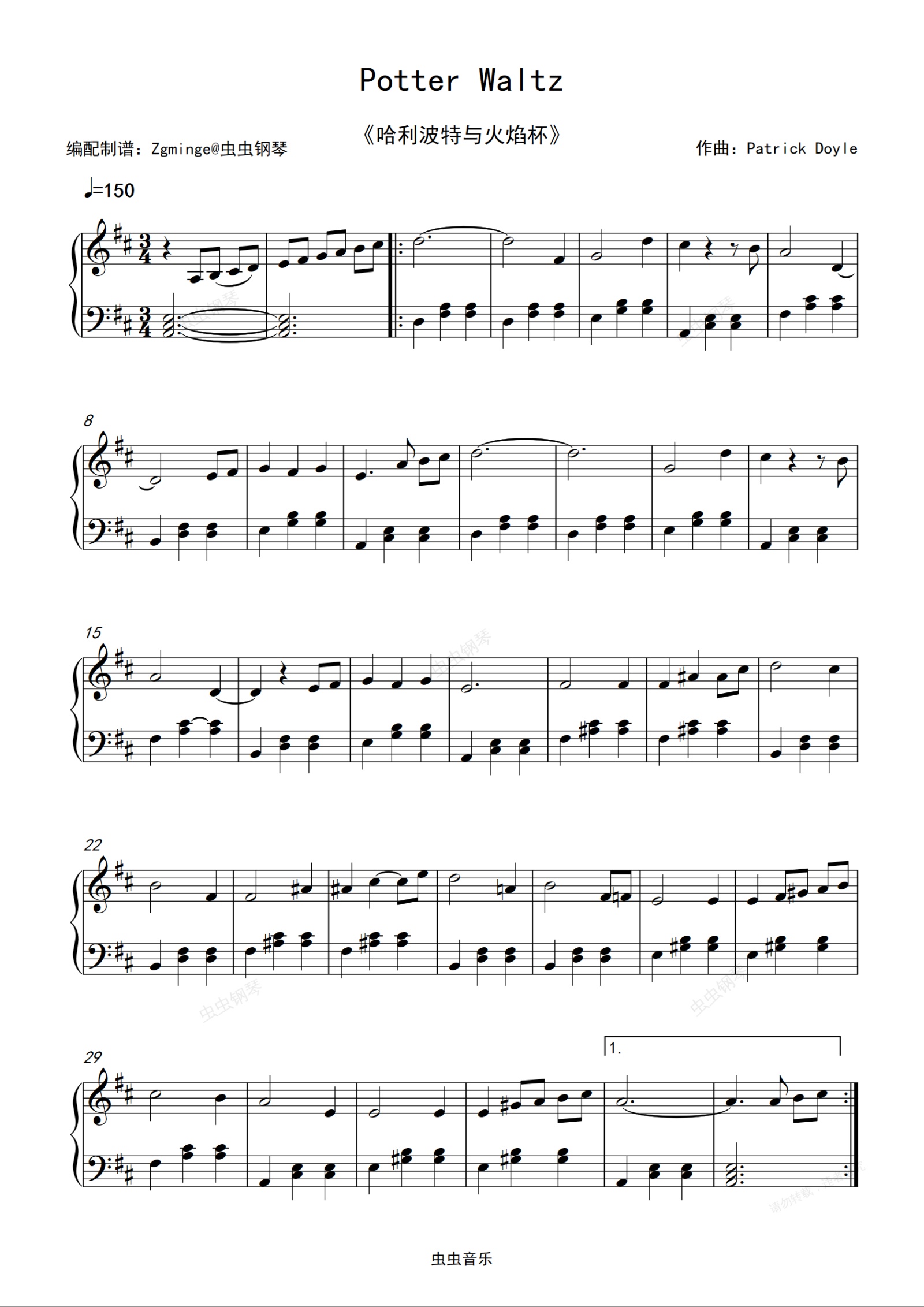 钢琴谱:Potter Walt 哈利波特与火焰杯 插曲