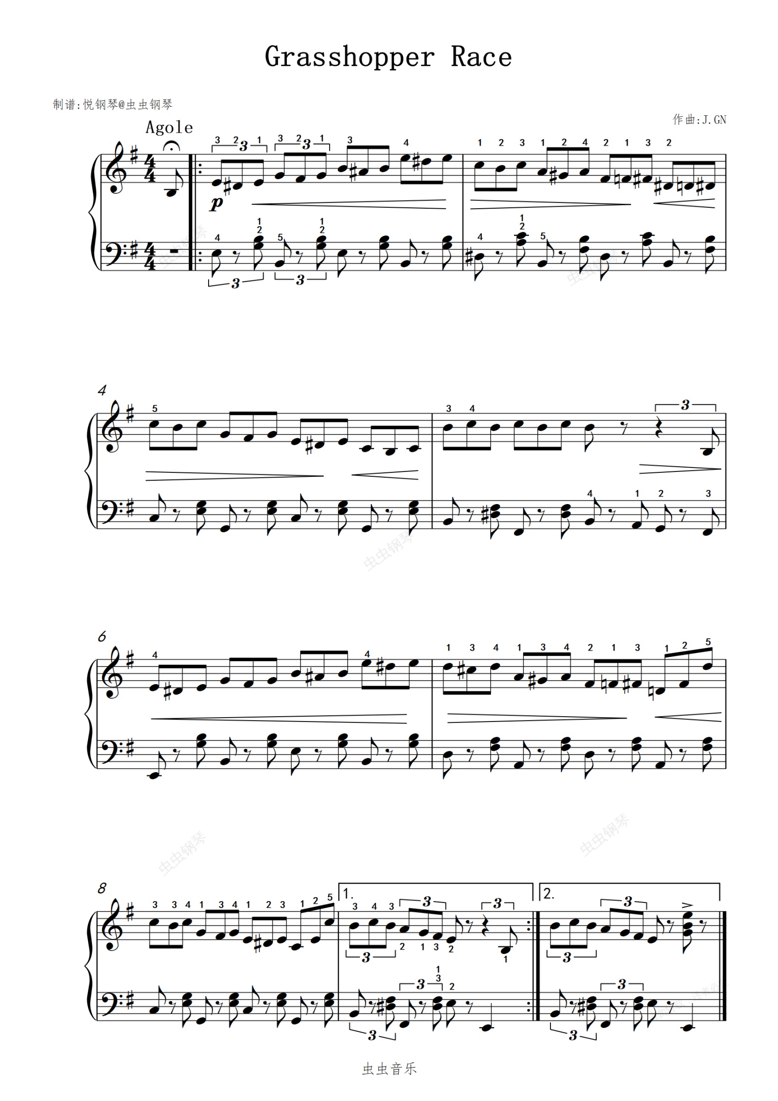 钢琴谱:蚱蜢竞赛//Grasshopper Race【诙谐小曲】