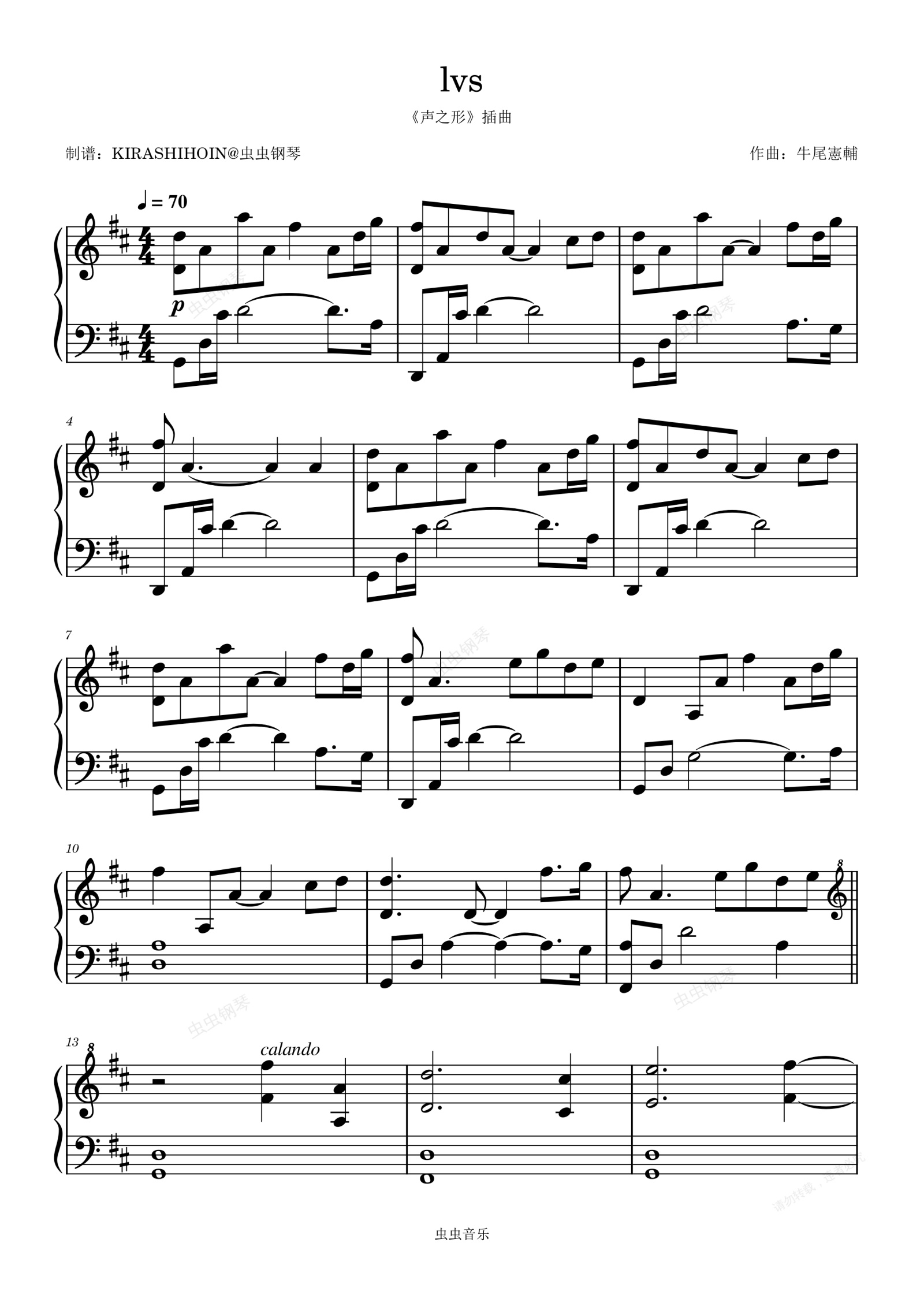 钢琴谱:lvs(《声之形》插曲)- 牛尾憲輔