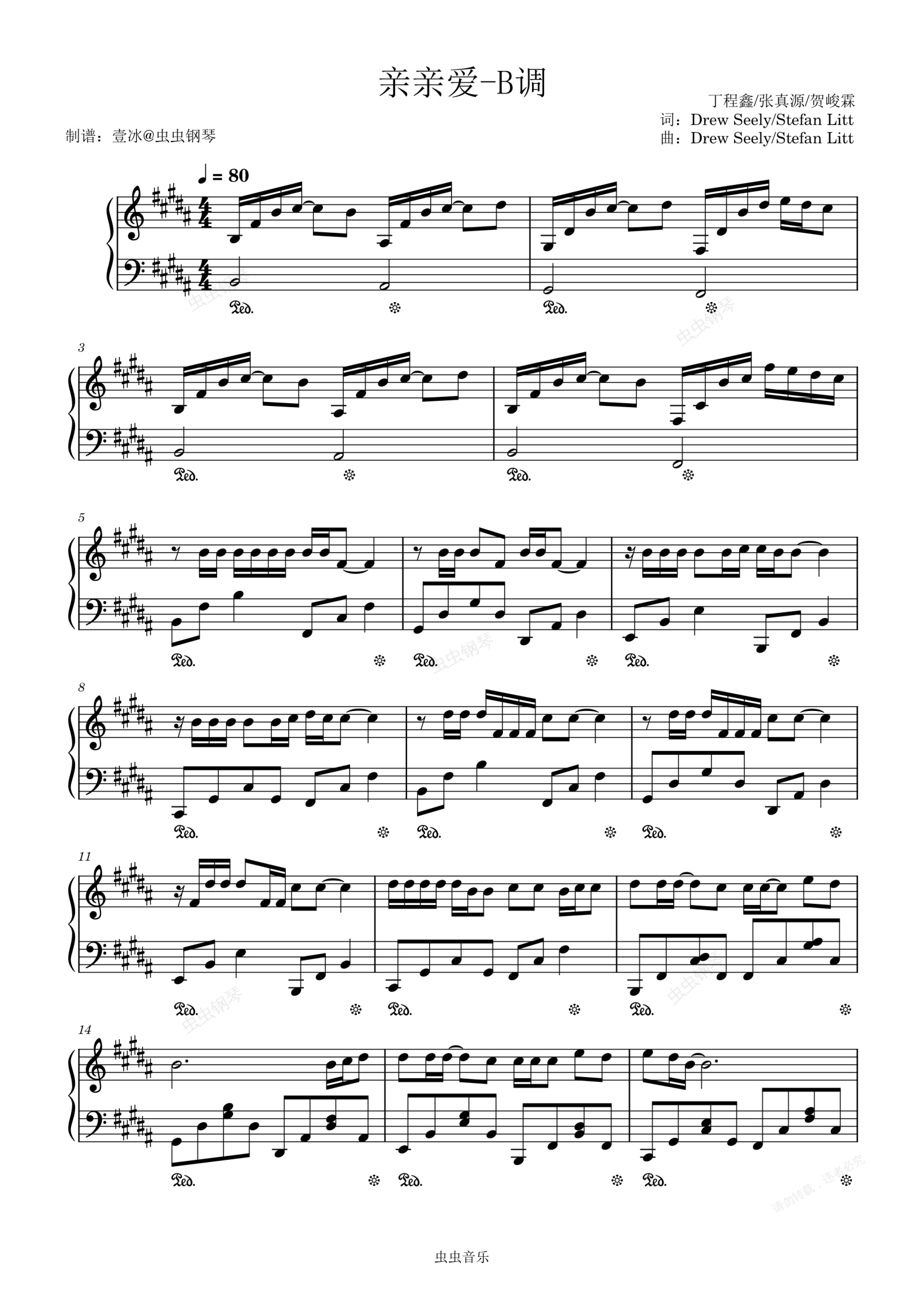 钢琴谱:亲亲爱//丁程鑫/张真源/贺峻霖-原调