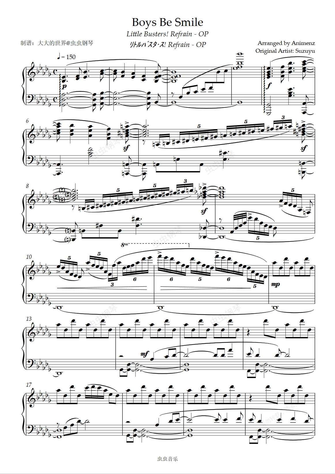 钢琴谱:【Animenz】Boys be Smile - Little Busters!: Refrain OP