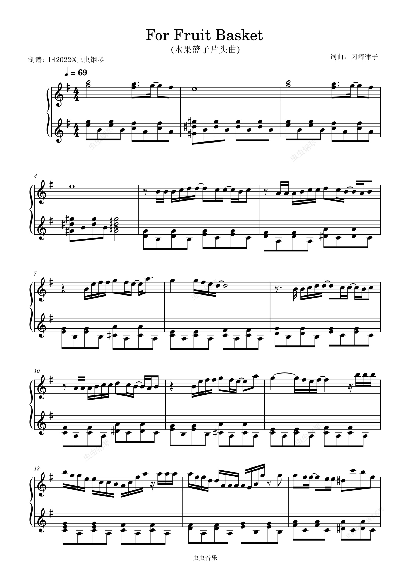 钢琴谱:For Fruit Basket-水果篮子片头曲-冈崎律子